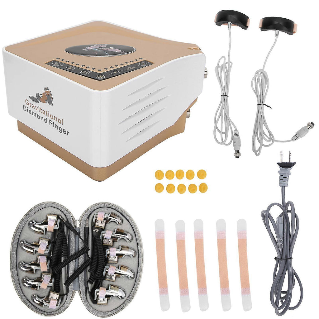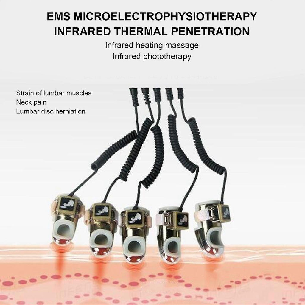 Feature:1. EMS micro electric physiotherapy, dredge collaterals, infrared heat penetration, close fit for the skin.2. Infrared heating massage relaxes the nerves and releases the pressure, comfortable massage experience.3. Intelligent keys, easy control and operation, simple and easy to learn, 6 keys design, enjoy massage.4. Electronic physical massage, adjustable vibration frequency and amplitude for lumbar spine massage.5. Good effect for eye skin forming, training risorius, fade wrinkles, lifting jaw line and neck skin curve.Specification:Condition: Item Type: EMS MassagerMaterial: ABS + Metal Rated Frequency: 50-60HzVoltage: 110-240VNumber of Fingers: 10Mode: Photothermal mode, microcurrent modePhotothermal Mode Gear: 3 Gears (1st Gear heating, 2nd Gear light, 3rd Gear heating and light) Microcurrent Mode: 3 Modes Microcurrent Gear: 8 Gears Introduction: Through internal heat acupuncture + low frequency energy pulsation waves + non-invasive fat dissolution + self reconstruction principle: from shallow to deep, from near to far meridians resonance, and with a strong driving force, penetration, diffusion forceInstallation Steps:1. Take out the finger sleeve adapter and connect the four-core socket of the host (insert two sets of fingers into the two four-core sockets respectively)2. Take out the finger sleeve and connect the connecting wire to the finger sleeve adapter3. Wear fingers for skin caring Steps to use:1. Clean face skin.2. Wear finger sleeve (3 fingers, 5 fingers can be freely matched)3. Plug in the power to adjust the BIO function, which is divided into 8 gears, to start from the low gears step by step. Wait for the body to adapt, and then use high-gear power.4. Micro current regulation is divided into P1/P2/P3. Start from the low gear step by step. After the body adapt, then use the higher gear.5. The time is set as 10/20/30 minutes. After 30 minutes, the instrument will shut down automatically, which is normal..Package List:1 x Host 1 x Manual 10 x Finger 1 x Finger Storage Case 2 x Finger Sleeve Adapter 1 x Power Cable 1 x Bag of Rubber Finger Sleeve 5 x Tape