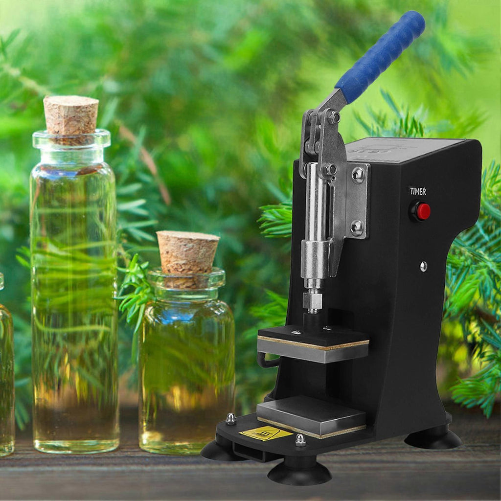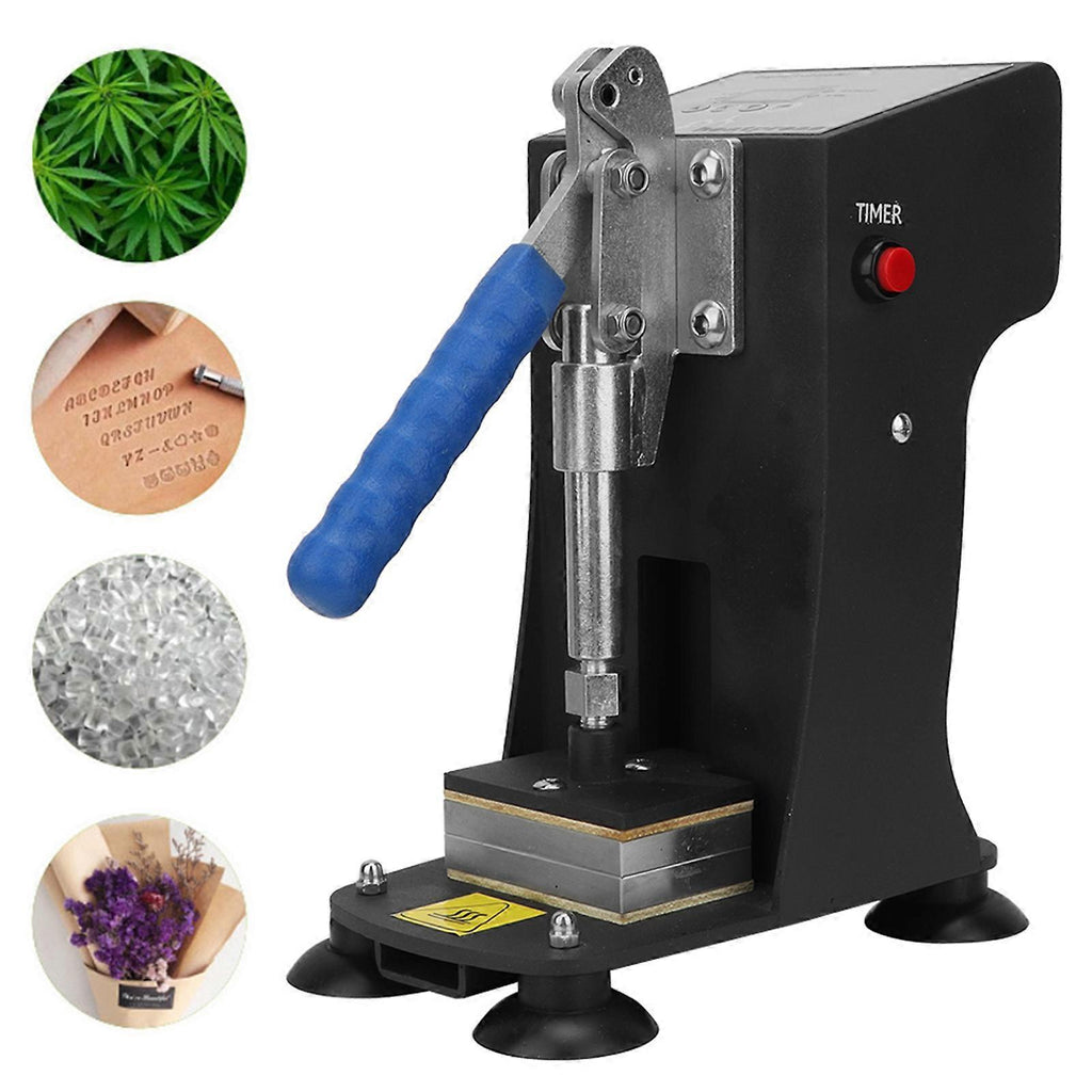 Features:Double heating plate and timer; Fahrenheit and Celsius temperature options. Very light (less than 10 pounds),ultra-portable, fun to operate, no additional equipment require. Ergonomic handle design for easy pressing and moving; you can even put it in your backpack while you travel. This mini rosin high pressure hot press can generate 500KG pressure, which is very convenient to use. Double-heat plate high-pressure hot press is also a good method for rosin extraction. It requires more reasonable pressure, temperature and time. Larger pressure will definitely produce more rosin. This ribbon cable controller allows for faster replacement while the LED display has excellent performance for accurate temperature control and readout. Laser cutting frame: Belgian laser cutting frame, smooth cutting surface without burr, more precise joint connection. Specification:Material:Iron Shell,Aluminum Heating PlateColor:Blue+BlackPlug:US 110V/EU 220V/UK 220V/AU 220V(Optional)Double Heating Plate Size: Approx. 5 x 7.5cm/2 x 3inPower: 110WPackage List:1 x Heat Press1 x Power1 x User Manual Note: 1.Please kindly make a note if you need any plug adapter.2.The handle can withstand a pressure of about 450kg. It is recommended not to increase the pressure when using it, it is easy to cause the bolt to collapse.3.Please note that the new type and old type of this product will be sent randomly, and make sure you will not mind before ordering.Users Manual:High-pressure hot presses are also a good way to extract rosin oil. Turn on the controller, set the desired temperature and time, and set the required pressure. The filled tea bag filter is then placed between the folded parchment papers, and the folded parchment paper is placed between the heat-generating plates and operated according to the hot pressing method of the rosin technique, usually they are simple to operate, when the time counts down to 0, immediately pull the parchment from the heating plate and put it into the cooling plate, please repeat the process on the same tea bag filter until the result is satisfactory..