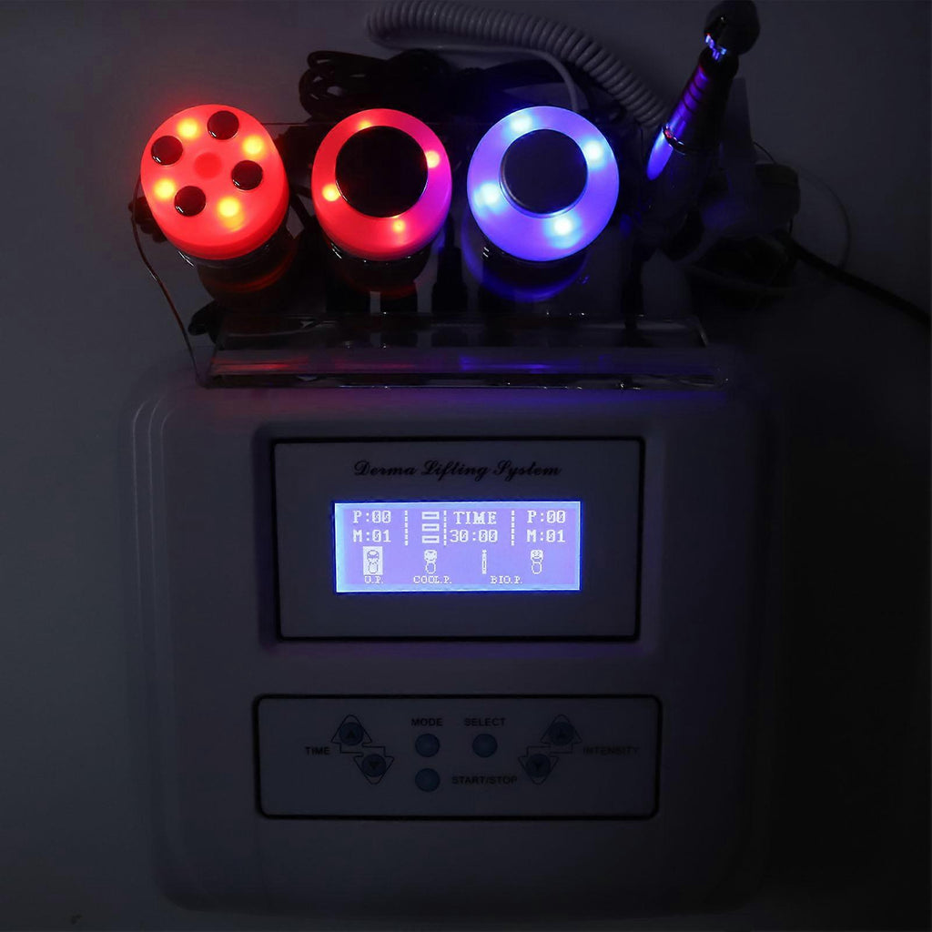 Feature:1. Fat Removal: Skin beauty machine adopted low levels of red lighting to create safe and painless effect on skin, which can releasing the energy stored in fat.2. Reduce Edema: RF Skin tightening device can eliminate skin edema and improve lymph circulation, so as to achieve skin firming and tightening effect.3. Eliminate Fatigue: Skin rejuvenation beauty machine witha eye care pen to reduce eye bags and dark circles, which can eliminate eye fatigue and reduce skin darkness.4. 5 Heads: RF Skin tightening device with 5 different working heads for you to choose, which is suitable for face, back, buttocks, chest, legs, bring you much convenient.5. Skin Rejuvenation: RF Skin beauty machine can accelerate cell division and regeneration, effectively restore skin youthful state, which can create smoothing and soften skin for you.Specification:Item Type: Facial Beauty MachineMaterial: ABSElectrophoretic head: restore skin elasticity, smoothing wrinkles, lift and tighten skinMicro electric head: loaded with skin care solution and lotion for easy absorptionIce head: repair damaged, sunburned skin, lock moisture and nutritionBeauty eye pen: remove eye bags, dark circles, crow's feetEnergy sensing hammer: used with beauty penApplicable Parts: Face, back, buttocks, chest, legs.Package List:1 x Host1 x Support1 x Electrophoresis Head1 x Micro Electric Head1 x Ice Head1 x Beauty Eye Pen1 x Energy Sensing Hammer1 x Plug1 x English Instruction 1 x Ball Bottle