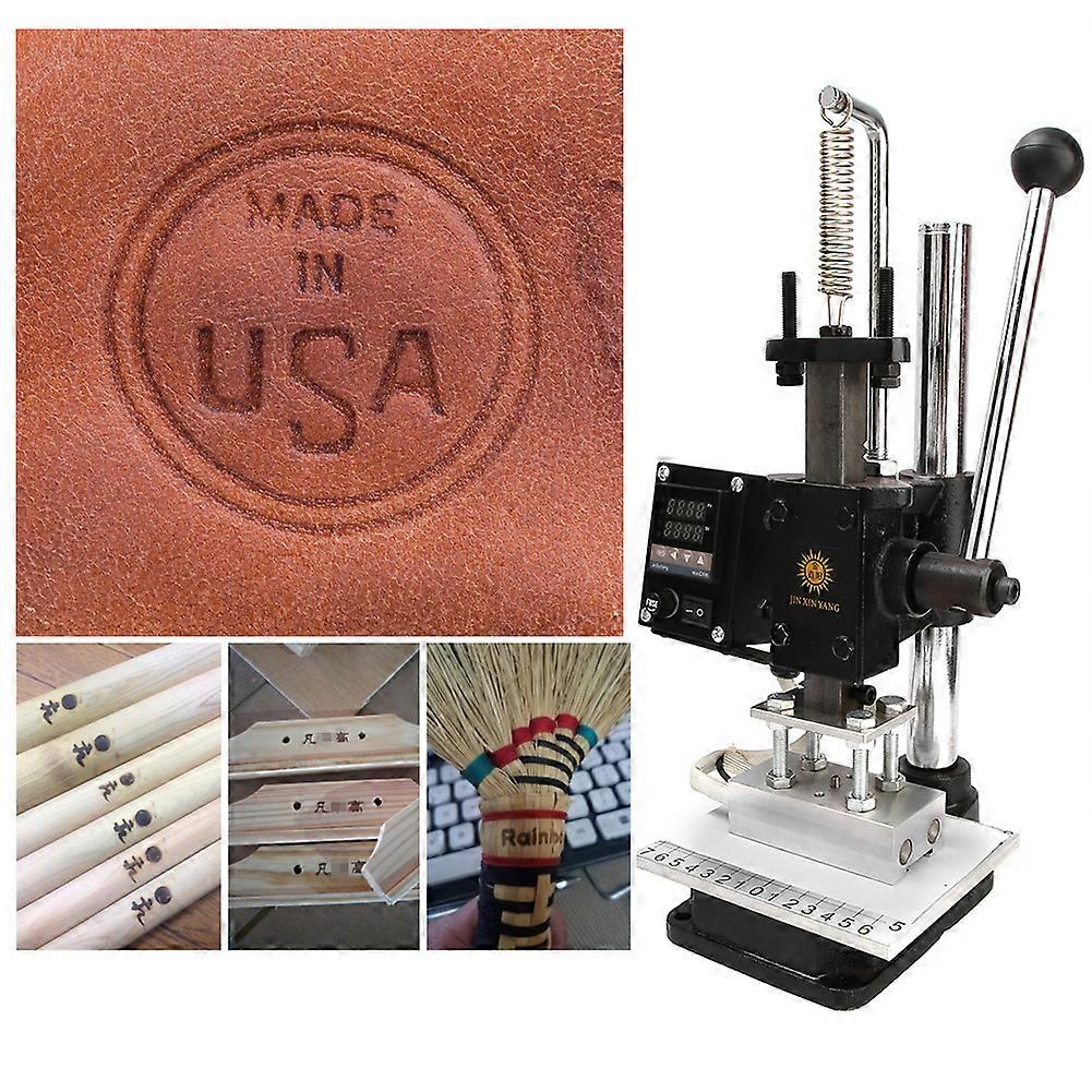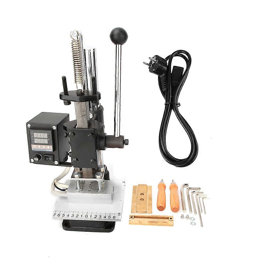 Features:1. Applicable Materials -- Suitable for leather / plastic / Pu / Pvc / paper / flannel / business card / wood / insole / bamboo and other materials.2. Material Requirements -- The material of hot stamping should meet: flat and smooth; hot pressing / branding materials should meet: flat and plastic; die cutting / punching / diamond material should meet: flat and less than 5 mm thick.3. Material Size -- The material thickness is less than 16cm. If it is larger than 16cm, you need to customize the pillar before you can use it. Length * width  18 * 18cm can be printed in the middle of the material; length * width > 18 * 18cm can not be printed in the middle of the material, because the pillars of the machine will block the material, you can change the position of the mold hole to adjust the distance properly.4. 6-in-1 Multi-function Hot Foil Stamping Machine -- Can be used for hot stamping, hot pressing, branding, die cutting, punching, diamond. Four advantages: T-slot heating plate, high temperature quick change mold; Scale table, material positioning is more convenient; Disassemble the heating plate and install tools such as punching holes and diamonds cutting; Intelligent numerical control temperature digital display, intuitive and accurate.5. Adjustable Lifting Height: 0-16CM, machine pressure up to 160KG.6. The purpose of the mold clamp fitting of the machine is to install the Logo mold. The purpose of the letter clip accessory is to install the English letters.7. Can be used with different accessories: Hanging paper holder, lifting table, drill chuck, white knife pad.Specification:Condition: Item Name: Hot Foil Stamping MachineType: #1: T slot 5*10cm+15cm letter clip +10cm mold clip, #2: T slot 5*15cm+15cm letter clip +15cm mold clip (optional)Plug & Voltage: EU Plug 220VPackage List:1 * Machine1 * Height Adjustment 6MM Wrench1 * Disassembly & Assembly of Heating Plate 5MM Wrench1 * Fixed Fixture 2.5MM Wrench1 * Letter Fixture (1 Wrench + 2 Components)1 * Mold clamp (1 Wrench + 2 Components)1 * Instruction Manual1 * Gold Foil Paper1 * Installation Tool1 * Power SupplyNote:1. Please allow slight error due to manual measurement. Thanks for your understanding.2. Monitors are not calibrated same, item color displayed in photos may be showing slightly different from the real object. Please take the real one as standard.3. Please kindly make a note if you need any plug adapter.