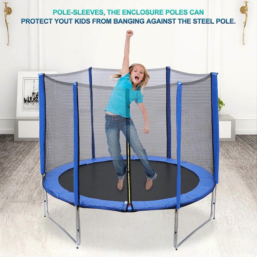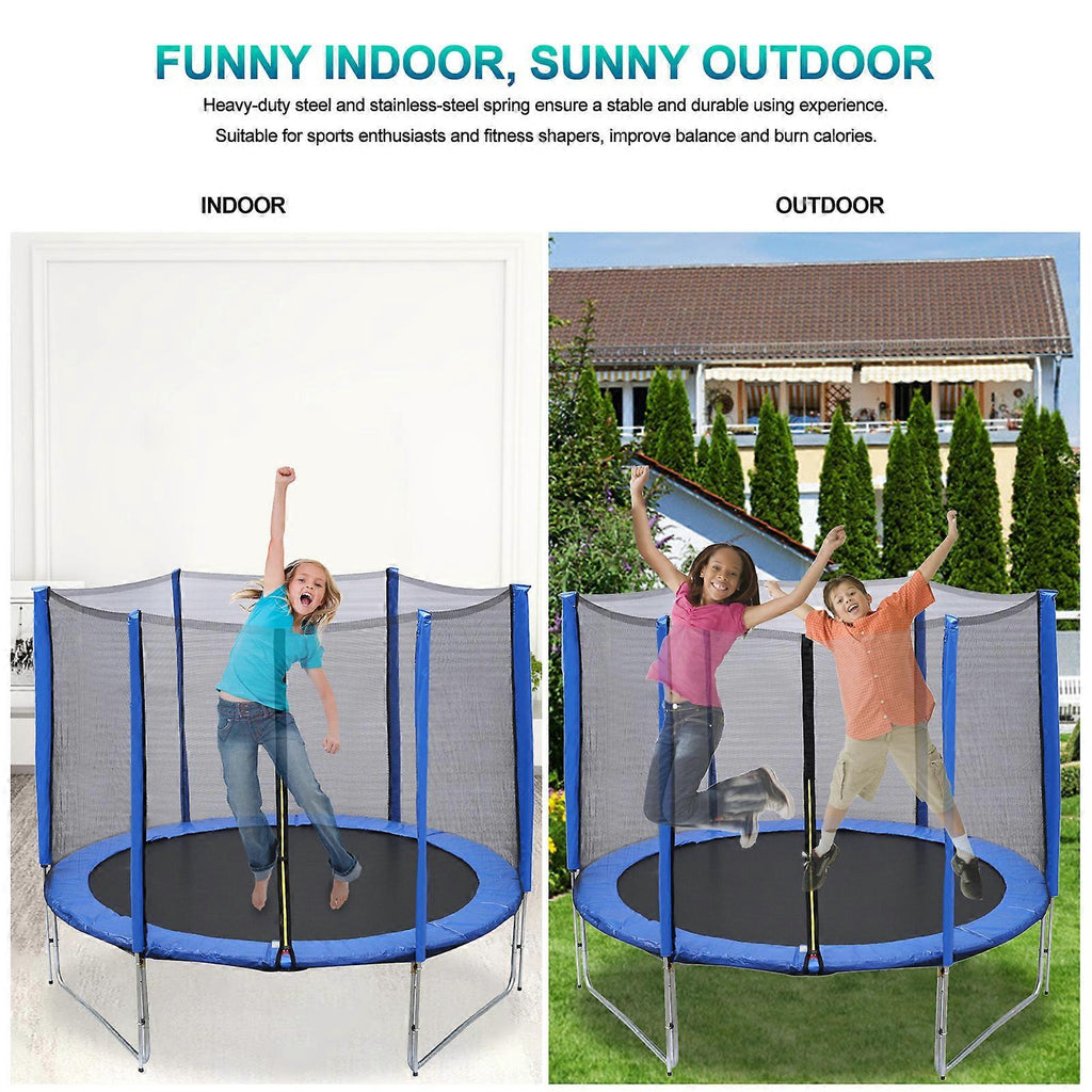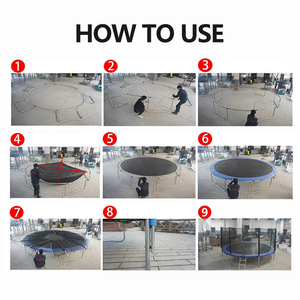 Feature:Specification:This product is safe to use, convenient. Make your life healthy and enjoyable.Features:Perfect for health caring, make your life healthier.Heavy-duty steel and stainless-steel spring ensure a stable and durable using experience.Foldable design allows to install quickly and save you much storage space and easy to carry.Pad is extended to cover all gaps between the mat and steel frame avoiding toes be stuck.Suitable for sports enthusiasts and fitness shapers, improve balance and burn calories.Take this trampoline home, take safe entertainment for your family. Specifications:Color: blue&blackDiameter of trampoline: 5FT(150cm), 6FT(180cm), 8FT(244cm), 10FT(304cm),12FT(366cm), 14FT(428cm), 16FT(488cm) (optional)Height of net: 90 cmTotal height: 120cmNumber of legs: 5FT: 3 legs 6FT: 3 legs 8FT: 3 legs 10FT: 4 legs 12FT: 4 legs 14FT: 4 legs 16FT: 6 legsNumber of spring: 5FT: 36 piece 6FT: 36 piece 8FT: 48 piece 10FT: 64 piece 12FT: 72 piece 14FT: 80 piece 16FT: 108 pieceMaximum net load capacity: 5FT: 200kg 6FT: 300kg 8FT: 300kg 10FT: 350kg 12FT: 400kg 14FT: 450kg 16FT: 500kgPacking List:1 * TrampolinePackage List:1 * Trampoline