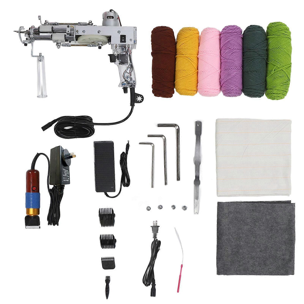 Feature:1. SAFETY DESIGN: Our tufting tool is rigorously tested and have built in over voltage, over current and short circuit guard systems. This makes it more effective in avoiding accidents during use and ensures your safety.2. EFFICIENT: The carpet tufting tool can up to a speed of up to 40 stitches per second, increasing productivity by 80 to 100 times compared to hand knitting. It can be used to weave all types of carpets and is compatible with all types of yarns.3. ADJUSTABLE: Tufting starter kit, experience the ease and safety of the tufting tool with 360 adjustable handling and speed control. Customize the speed to your liking to ensure beginner friendly operation.4. APPLICATION: You can use the 2 in 1 tufting machine (usually used for carpets) to create decorative items that can be hung on the wall. The process involves threading single yarns through fabric pieces to create shapes and designs.5. DIY TOOL: The electric tufting tool allows you to switch between cut and loop pile. You can use it to DIY your favorite rugs and create many beautiful works of art.6. SUITABLE FOR BEGINNERS: We provide the operation manual, beginners can learn and weave rugs quickly. Make sure to turn on the power switch before pressing the start switch for extra guard.Specification:Item Type: Tufting Starter KitMaterial: Metal, Rosewood, PolyesterProduct Specification: 1 SetProduct Use: Can be widely used in weaving different types of carpetsVoltage: 100-240V.Package List:1 x Rug Tufting Tool2 x English Instruction Manual1 x Electric Scissors3 x Hex Wrench6 x Yarn2 x Rough Flannel 13 x Accessories Note:1. Manual measurement, please allow some errors.2. Yarn color is random.