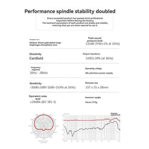 Dual gold plated diaphragm capsule ensures accurate directivity, wide frequency response and pure original-sound. Three patterns (cardioid, bi-directional, omni-directional) suit for different pickup applications. High SPL processing capability suits for different audio sources pickup. Built-in low-cut switch effectively reduces LF...