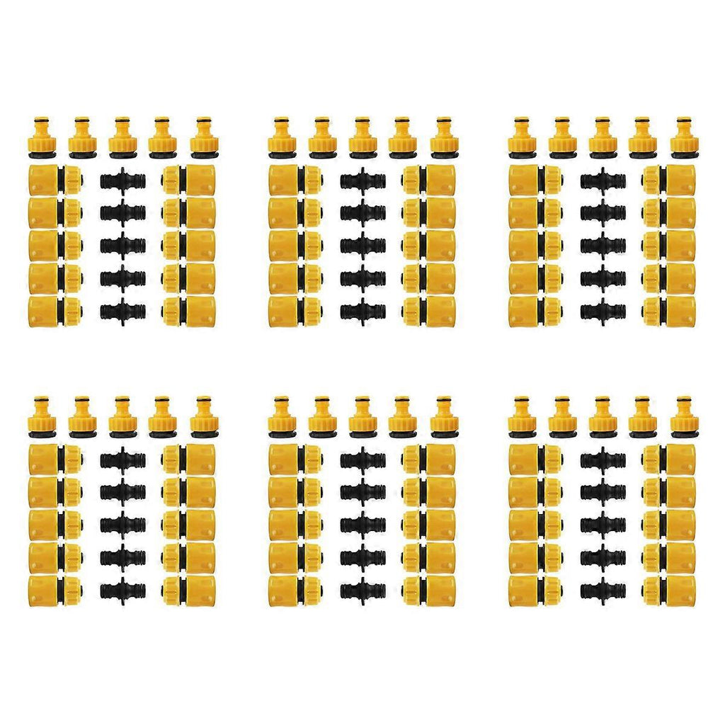 Wide Application: Three types of hose connector set are suitable for connecting most standard hoses or taps. Widely used in gardening irrigating, machines washing, balcony watering flowers and so on. Double Hose Connector: Connecting two ends of two hoses together to extent the length of your tube, convenient to water the garden. Can be securely and quickly connected and detached with a simple pull down of body. Material: Garden hose connectors are made of high-quality plastic, durability and impact resistance. for a long time. Material: plastic colour: Yellow + black Package Contents: 60 x 1/2 connector 30 x 1/2 to 3/4 connector 30 x Extended bidirectional connector Only the above package content, other products are not included. Note: Light reflection and different displays may cause the color of the item in the picture a little different from the real thing. The measurement allowed error is +/- 1-3cm.