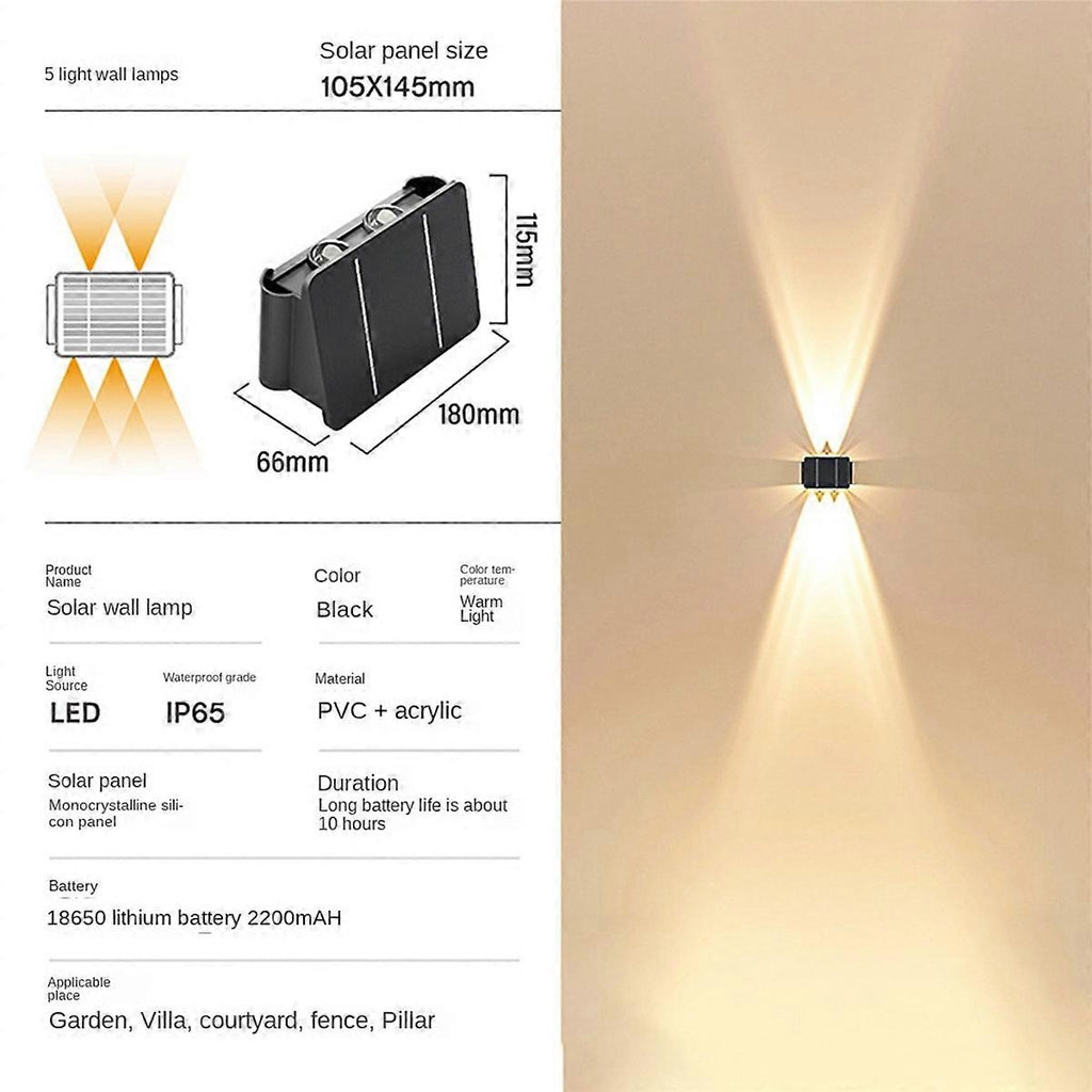 2X Solar Wall Light Outdoor Up-Down Lighting LED Lamp Solar Wall Washing Lights for Courtyard Garden
