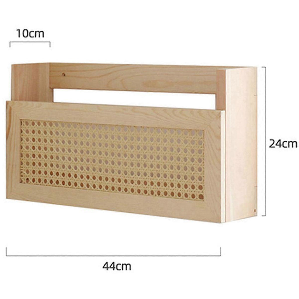 Our wall mounted magazine racks are made from wood and rattan grids, chosen for their durability and eco-friendly nature; The wood color adds a natural, modern touch to any home decor; Enjoy a that enhance your interior design ARTISTIC DESIGN COLORS: Featuring natural wood colors and carefully curated design elements, this wall magazine rack perfectly blends functionality with aesthetics; visual appeal Ease of Use: With a clear focus on functionality, the pergola is designed for ease of use; it mounts effortlessly , and loading the magazine is just as simple; it creates an organized space whether or in the office space The overall dimensions of this retro wall shelf are approximately 17.3 x 4 x 9.4 inches/44 x 10 x 24 cm, providing ample storage space; the spacious design makes it easy to neatly stack your magazines, newspapers, mail, and more Featuring a versatile design, this hanging magazine rack can hold a variety of items, from magazines and newspapers to mail and brochures; Additionally, they can be easily integrated into a variety of environments, including home offices, living rooms, cafes, libraries or business premises Colour:Wood Color Material:Wood Size:About 44x10x24cm Package Contents: 2 x Magazine wall racks Only the above package content, other products are not included. Note: Light reflection and different displays may cause the color of the item in the picture a little different from the real thing. The measurement allowed error is +/- 1-3cm.