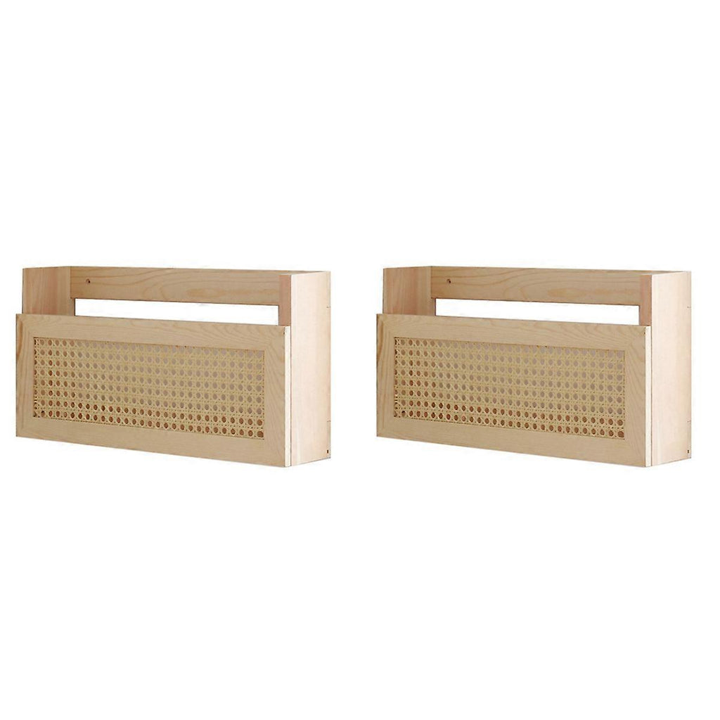2X Wooden Magazine Wall Rack with Rattan File Holder Hanging File Rattan Bookcase Mail Organizer for