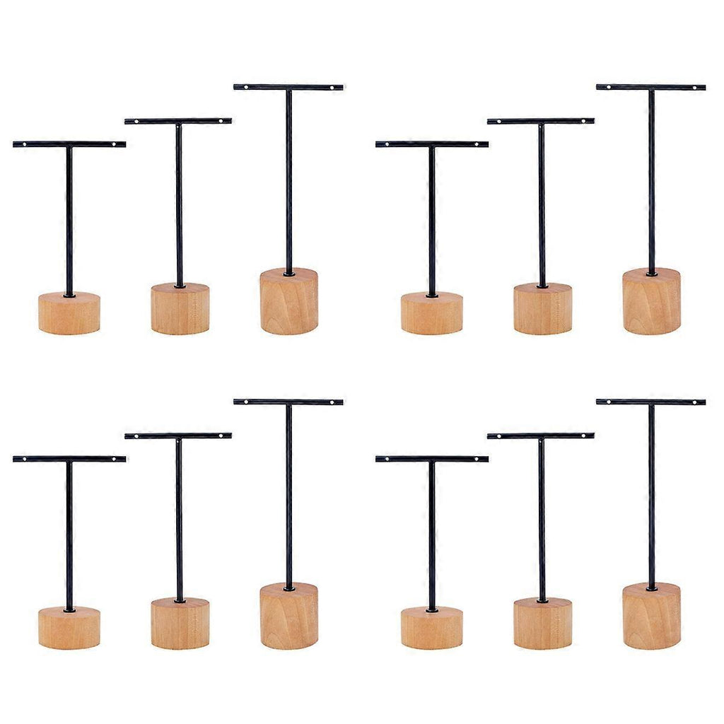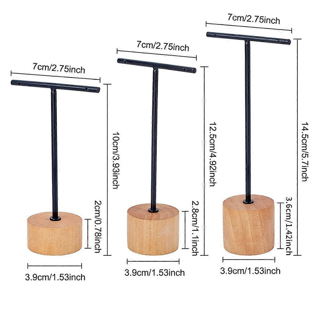 3Pcs T Bar Earring Display Stand with Wooden Base Jewelry Holders Hanging Jewelry Organizer for Phot