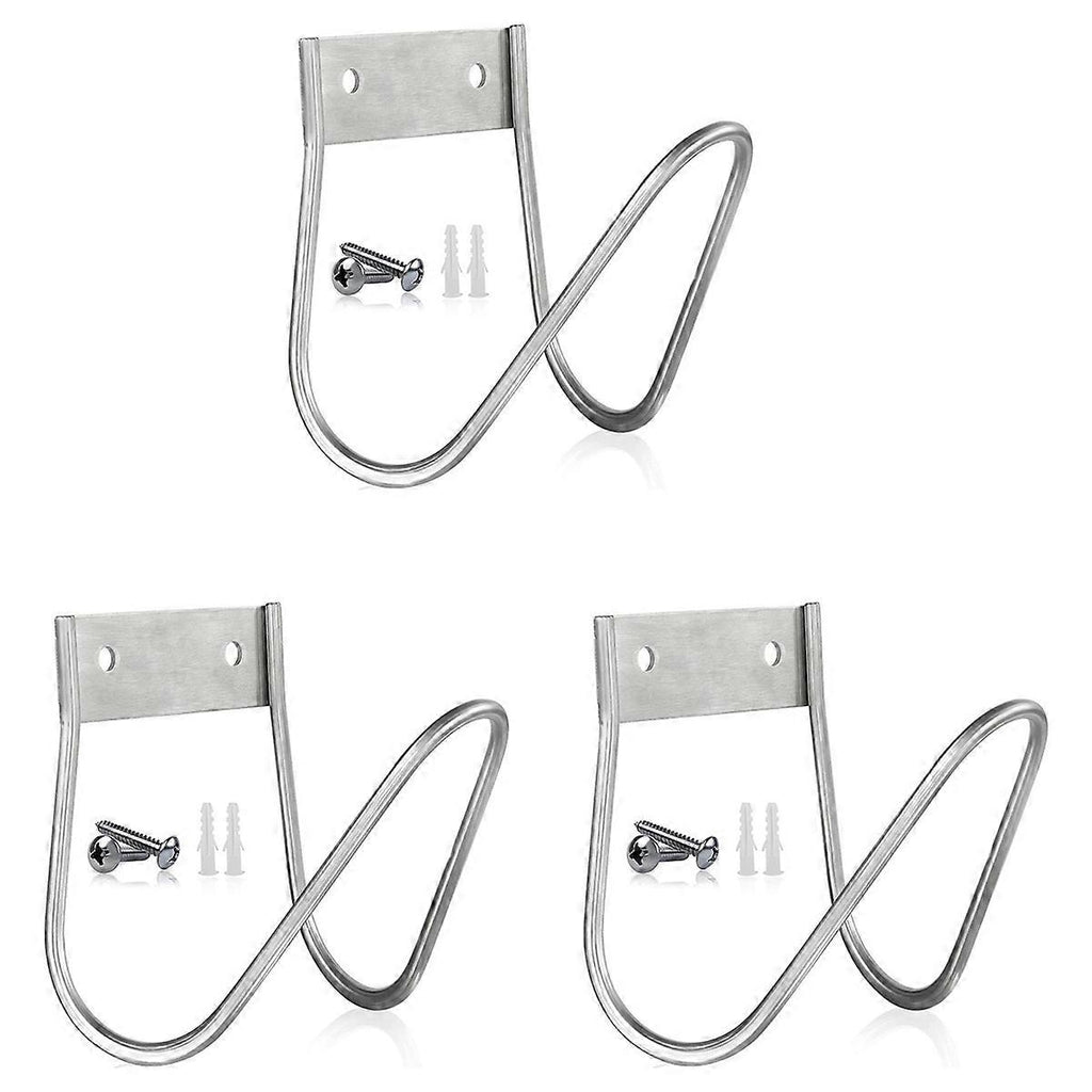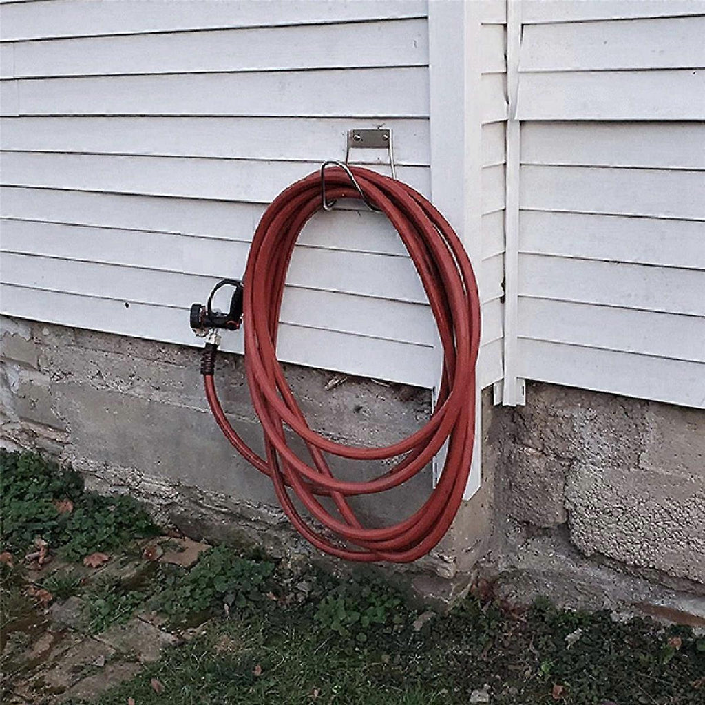 [HIGH MATERIAL QUALITY]: This product plumbing hooks are made of 304 stainless steel material, can withstand harsh environments, sturdy and , good appearance, rustproof and easy to install. Package includes stainless steel screws, plugs [NEW USES]: Our wall mounted hose hanger is perfect for water hoses, extension cords, air compressor hoses, welding leads, vacuum hoses, Shore power cords, RV hoses. Great for garden and garage organizations and trades. It can be used as a hose butler or hose [Safety & Organization]: Wall mounted hose racks turn your garden, workshop into an organized area, saving space and minimizing trip hazards and accident risks! [Size & Capacity]: Our heavy duty hose rack wall mounted measures 6.3x7x6.3 inches and holds 90 feet of 1/2inch diameter hose, 80 feet of 5/8inch diameter hose and 70 feet of 3/4inch diameter hose. [EASY TO USE]: Utility hook mounts on fence, side of house or wall. It can be mounted on concrete, wood paneling and walls. Installation is easy with stainless steel screws and plastic inserts. Colour:Silver Material:Stainless steel Package Contents: 3 x Garden Hose Bracket Only the above package content, other products are not included. Note: Light reflection and different displays may cause the color of the item in the picture a little different from the real thing. The measurement allowed error is +/- 1-3cm.