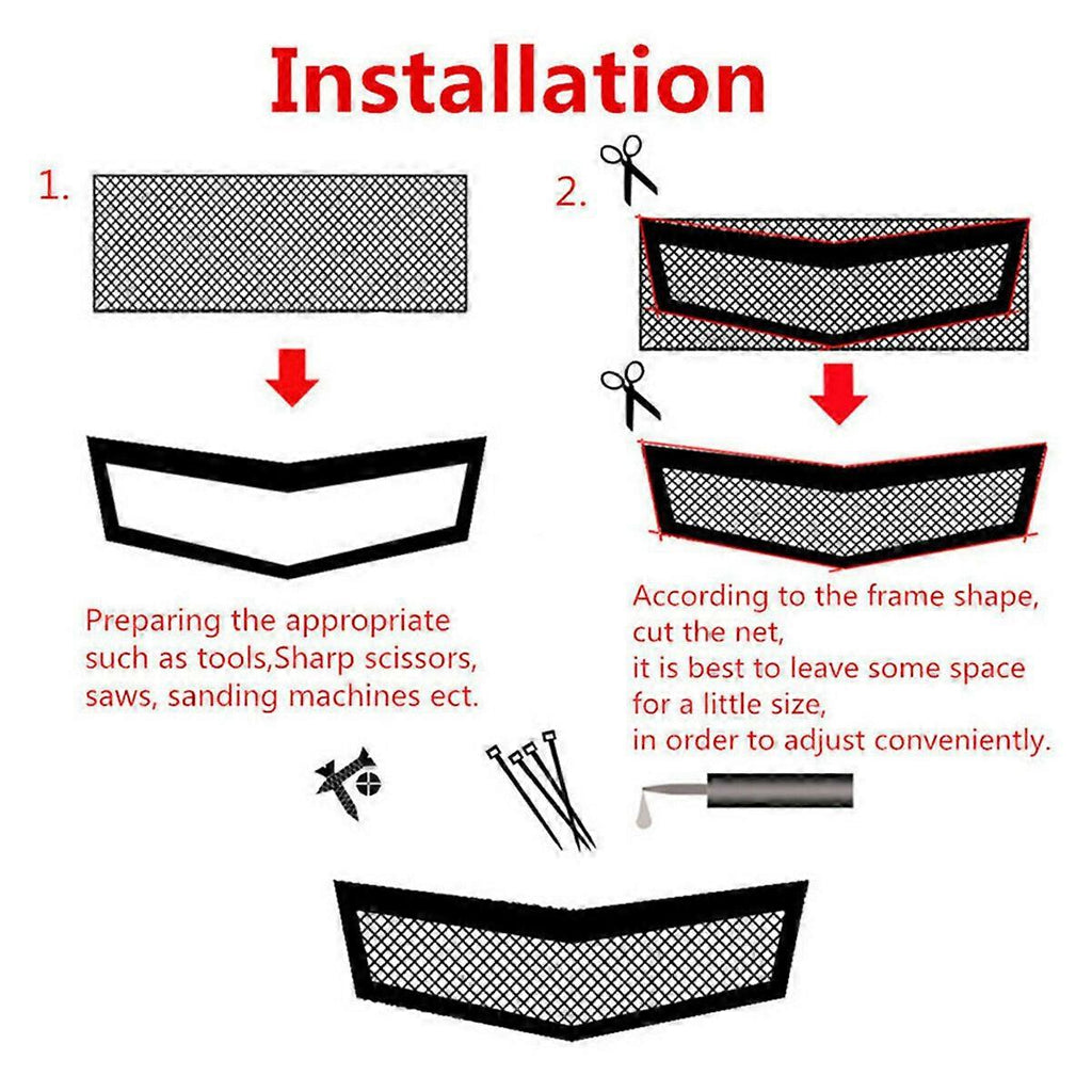 Feature:Made of high quality metal. Soft but ,easy to cut and install. Prevent the destruction of the process of moving foreign objects on the vehicle interior parts. Universal Fit for any bumper, body kit, , hood vent, vehicle opening, etc. Protect your intercooler, radiator, and engine bay from road rocks, debris, garbage, leaves, etc. Grilles provide a great alternative to transform your vehicles appearance to level. Grilles not only serves as the centerpiece of your vehicle, it also prevents debris and or harmful things from damaging radiators. While allowing air to pass by and keep the engine running cool. The mesh can be bent and molded into different shapes. Specification: Color: black Material: metal Size: 40 x 13inch/ 100 x 33cm Mesh size: 8x16mm Fitment: Suitable for unlimited applications, grills, spoilers, air intakes, radiator grills, etc. It also can be use in your PC and your home. Package Contents: 6 x Car Grille Only the above package content, other products are not included. Note: Light reflection and different displays may cause the color of the item in the picture a little different from the real thing. The measurement allowed error is +/- 1-3cm.