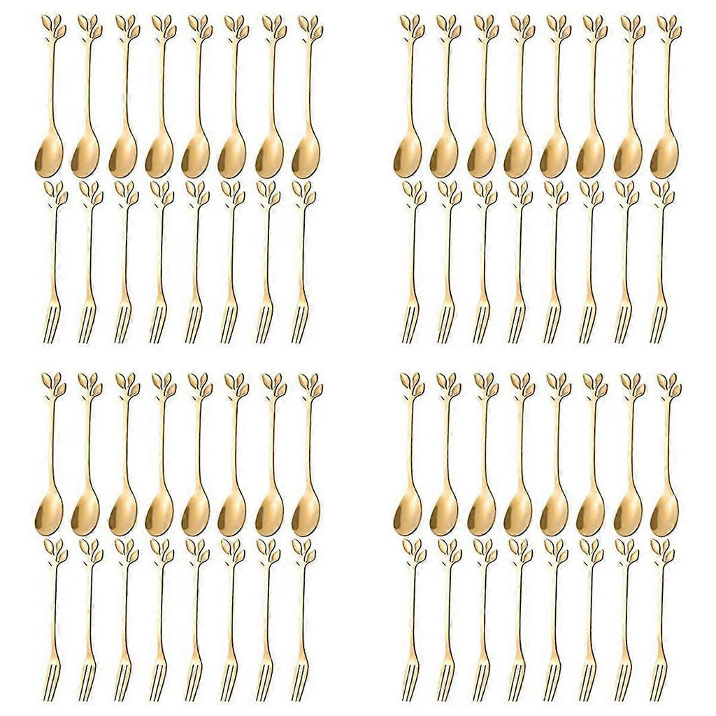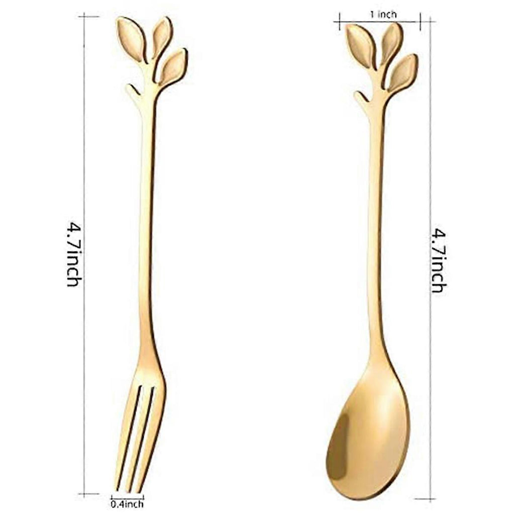 [Dishwasher Safe] -- Premium Stainless Steel. It Is Easy To Clean For Both Hand Washing And Dishwasher Cleaning. [Size] -- fork 4.7 inch,Spoon 4.7 inch.Perfect For Tea, Coffee, appetizers, desserts, mini cake, charcuterie, Stirring etc. Also worked great as small fruit salad, tasting forks ect. [Craft] -- Mirror Polishing Process With Bright And Smooth Surface, Edge Is Polished And Smooth Without Burrs,Not Rough And Will Never Cut Your Hands And Mouth. [Creative Design] -- Fork & Spoon Features Stylish Leaf Shapes. This Is The Best Gift For Friends And Families. Perfect For Special Events, Parties, Birthday and Wedding ect. Also Perfect For Daily Use. Colour: Gold / Silver Material: stainless steel Package Contents: 8 x spoons 8 x forks / 10 x spoons 10 x forks Only the above package content, other products are not included. Note: Light shooting and different displays may cause the color of the item in the picture a little different from the real thing. The measurement allowed error is +/- 1-3cm.