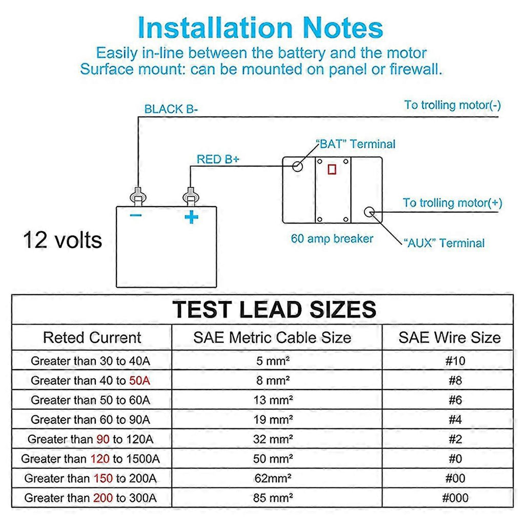Specification: Waterproof breaker switch compatible with all 12V/48V DC Systems Function: Always protect the safety of automotive electronics, Prevent car currents from being too high and damage automotive electronic equipment. Wide Application: Typically used in solar system, battery charges, inverter, Car audio video system, boat, RV and DC sound amplifier system. save money:Two modes, Current overload disconnection and manual disconnection.After the circuit is repaired, the switch turns ON and the fuse block can be used again.No need to replace the fuse. Easy to use and durable:Good Conductivity, Temperature And Pressure Resistance,Splash and dust proof Water proof.can be mount on panel or firewall. Current: 100A / 60A / 70A / 150A / 80A / 200A / 250A / 300A / 30A / 40A / 50A / 120A colour:Black Material:Plastic + Metal Package Contents: 1 x circuit breaker Only the above package content, other products are not included. Note: Light shooting and different displays may cause the color of the item in the picture a little different from the real thing. The measurement allowed error is +/- 1-3cm.