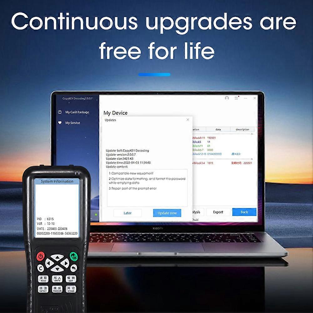 Handheld Key Machine iCopy with Full Decode Function Smart Card Key Machine RFID NFC Copier IC/ID Reader/Writer Duplicator ICOPY Supported IC, MF1, S50, S70, ID, TK4100, EM4100, HID26, HID35, HID37, GID64, GID50, GID40, GID32, GID16, SID64, SID50, SID40, SID32,125KHZ-13.56MHZ; It supports hundreds of smart cards including Asia,Europe,America,Southeast Asia,Affrica,Australia etc,it will be updated and supports more smart cards in the future (please note that not all chips are supported, because in the world each company can customize their special chip type if they want, and please note that some chip type are not writable, for example: IC MF1 S50 TK4100 EM4100 etc.). Due to different batches, there may be differences in product appearance, color, and printed text, which will not affect the use. With UID Card/Keychain Colour:Black Material:plastic Package Contents: 1 x RFID Smart Chip Reader(The color and appearance of accessories are random, and specified colors and appearances are not accepted) Only the above package content, other products are not included. Note: Light reflection and different displays may cause the color of the item in the picture a little different from the real thing. The measurement allowed error is +/- 1-3cm.