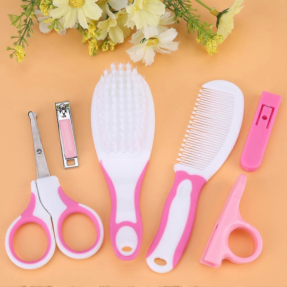 6pcs Convenient Daily Baby Nail Clipper Scissors Hair Brush Comb Manicure Care Kit Pink