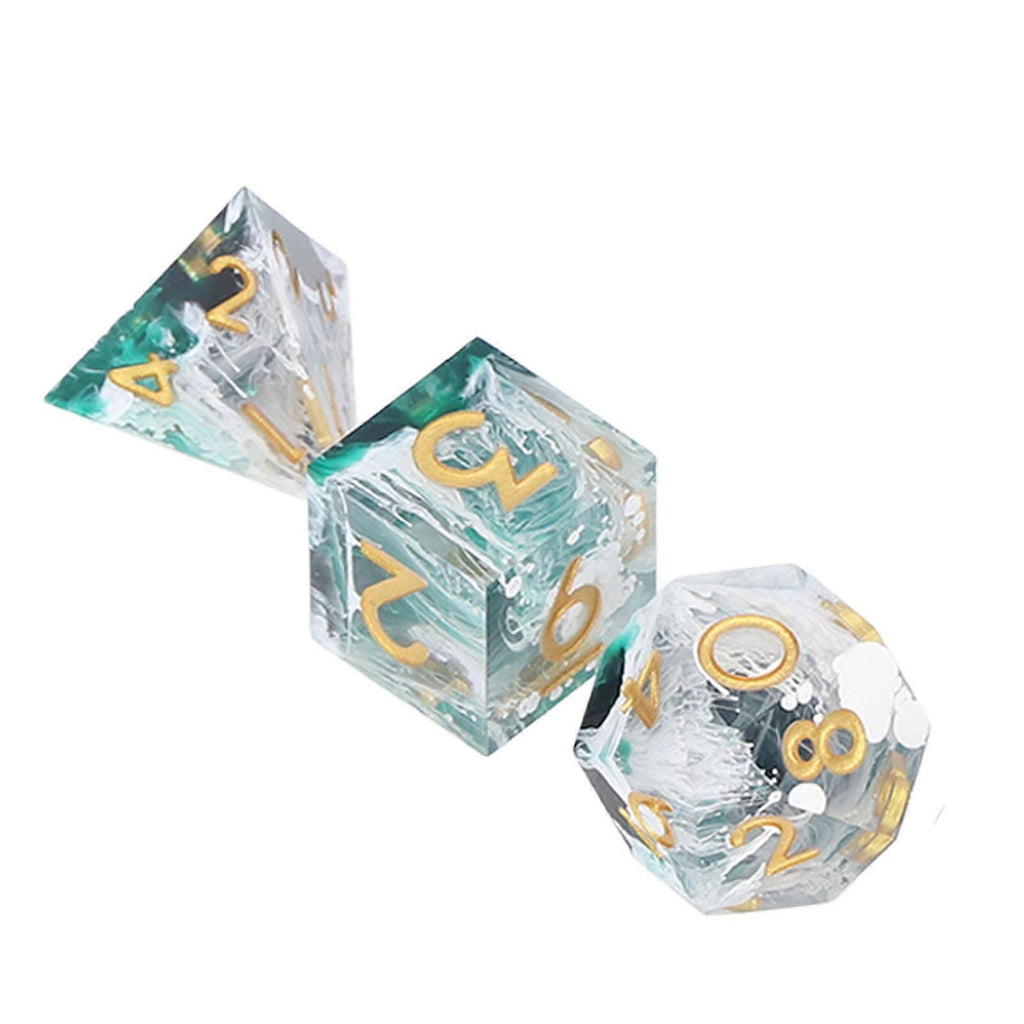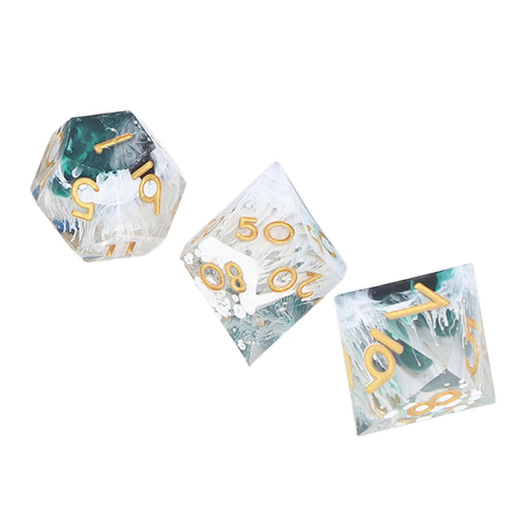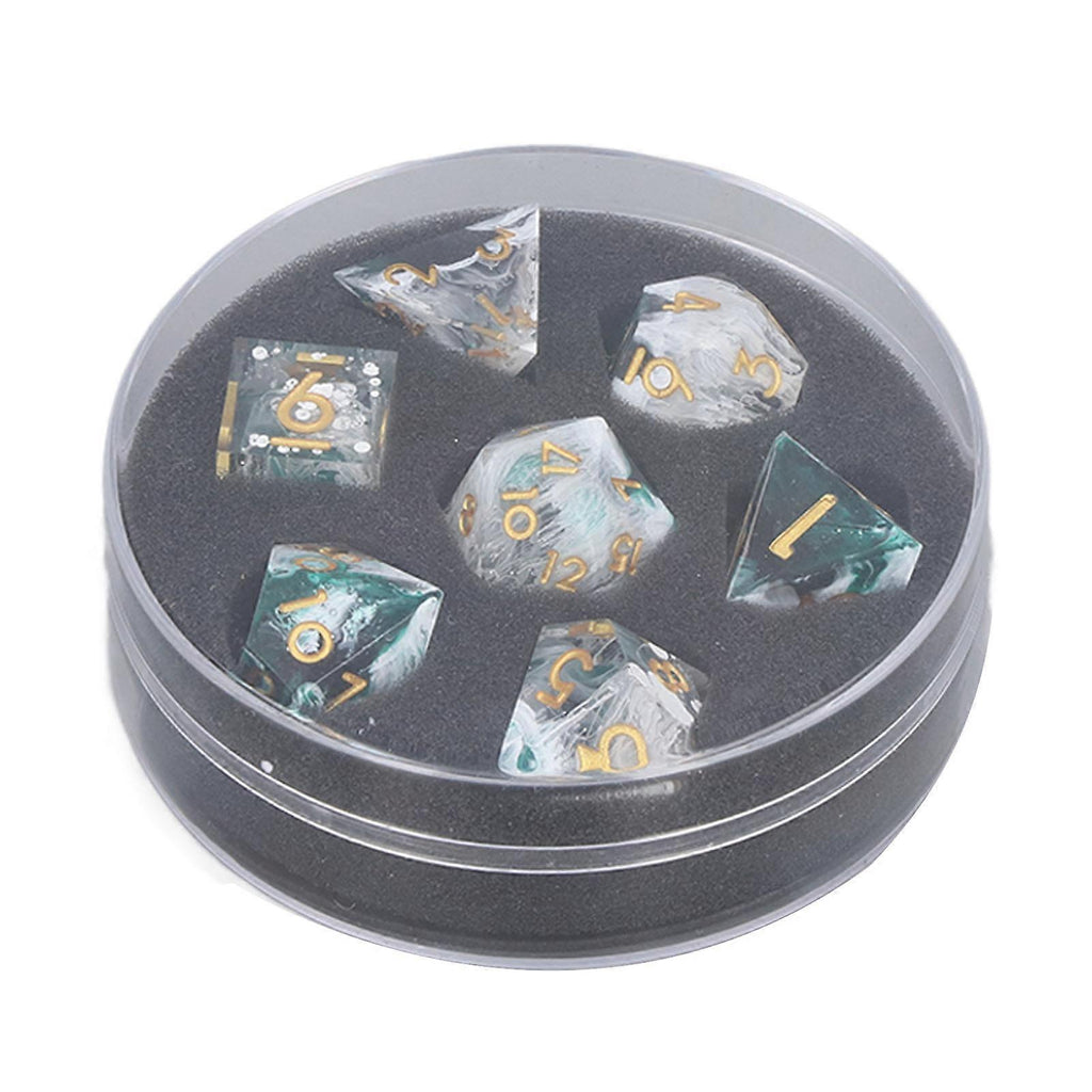 7pcs Polyhedral Dice Set Resin Sharp Edges Clear Numbers Table Gaming Dices for Board Games White and Green