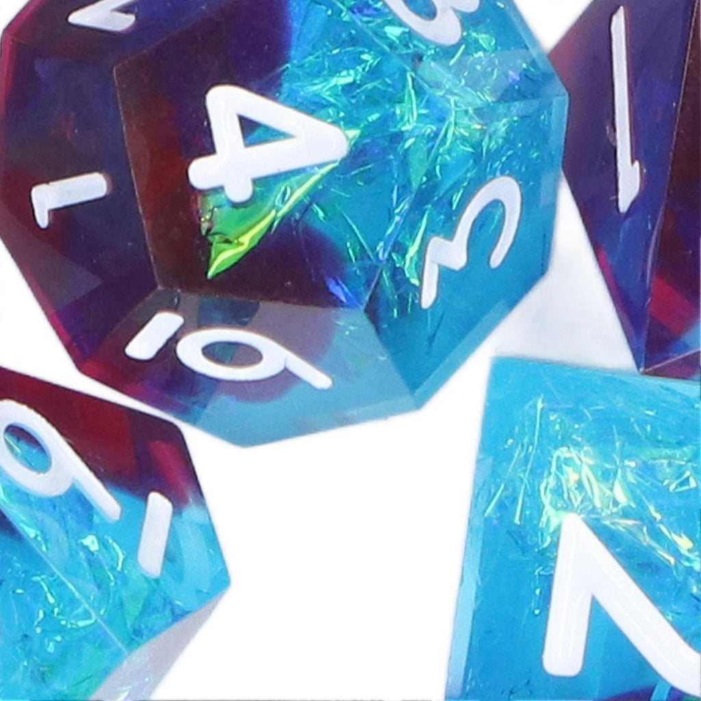 7pcs Polyhedral Dice Set Sharp Edged Resin Dice with Beautiful Inclusions for Table Board Role Playing Games