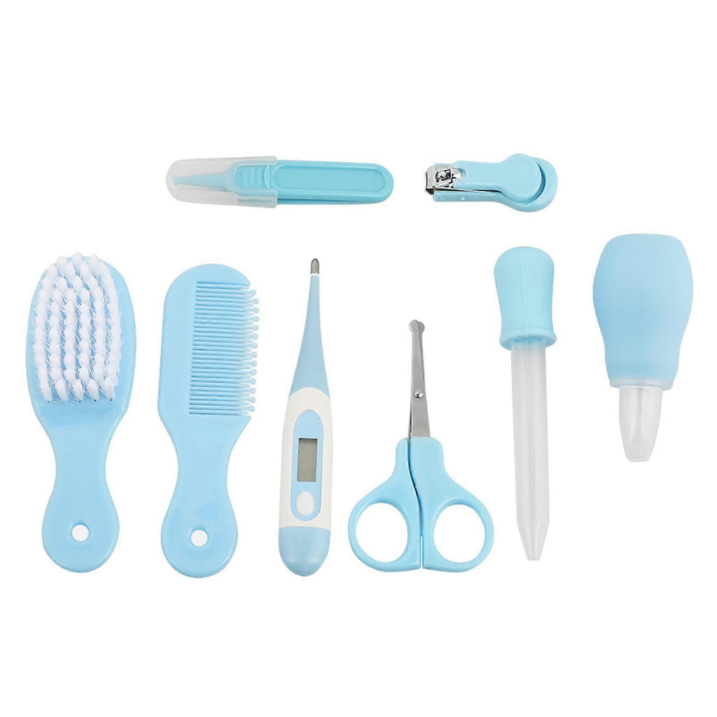 8pcs Convenient Daily Baby Nail Clipper Scissors Hair Brush Comb Manicure Care Kit Blue