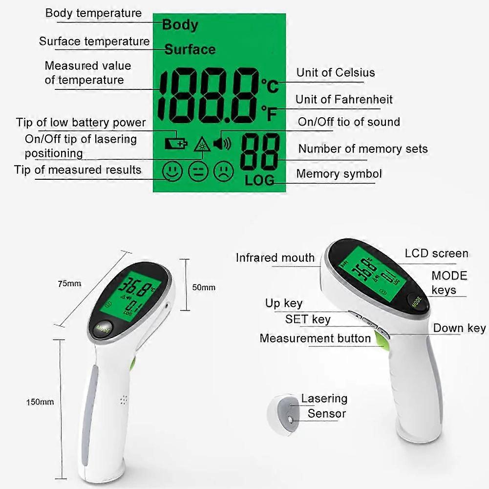 Usage: 1. Body temperature measurement; 2. Object temperature measurement; 3. Liquid temperature measurement
