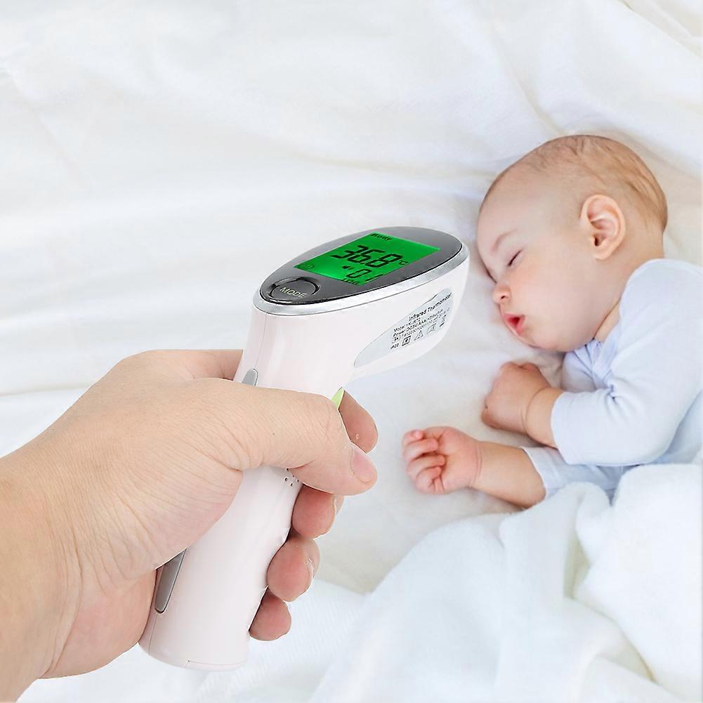 Green, yellow, and red backlights indicate normal body temperature, low or high fever, and red backlights with "beep beep beep" warning