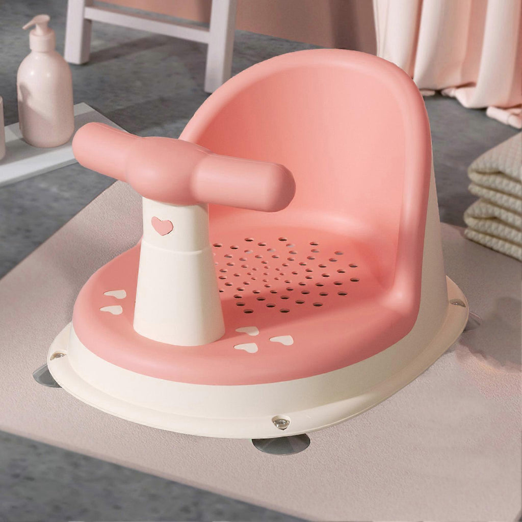 Baby Bath Seat Adjustable Ergonomic Prevent Slip Infant Bathtub Seat Bath Chair with Strong Suction Cups Sakura Pink