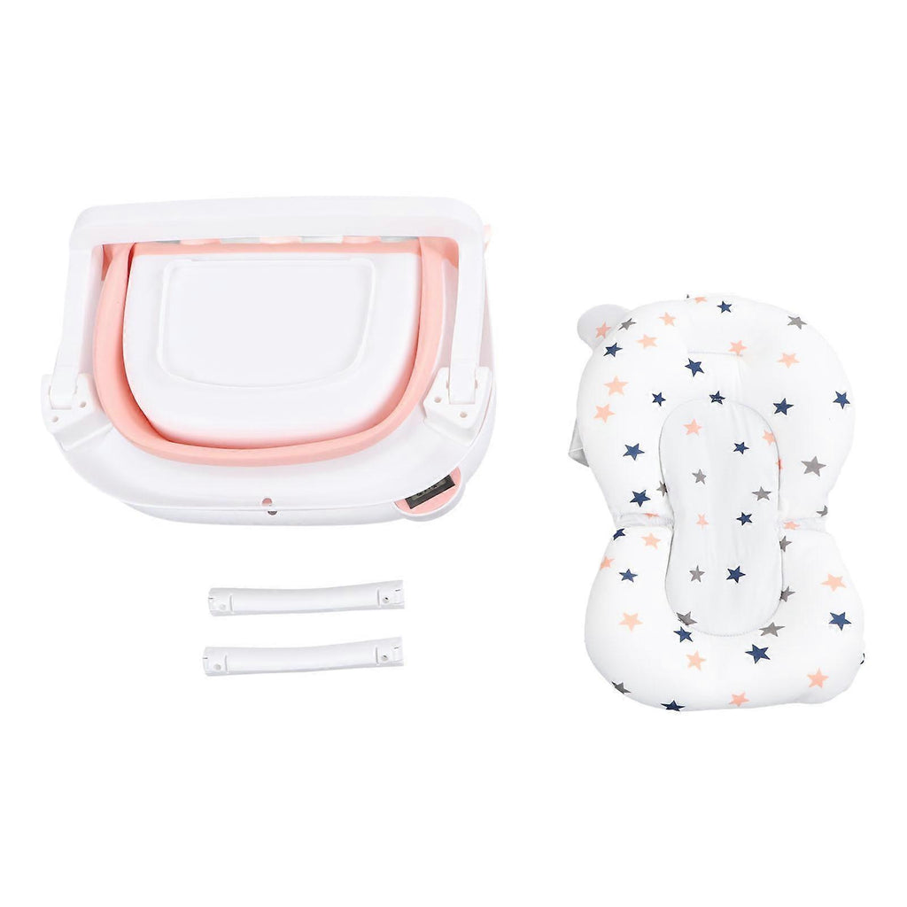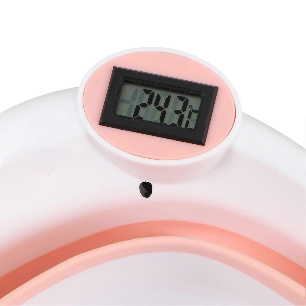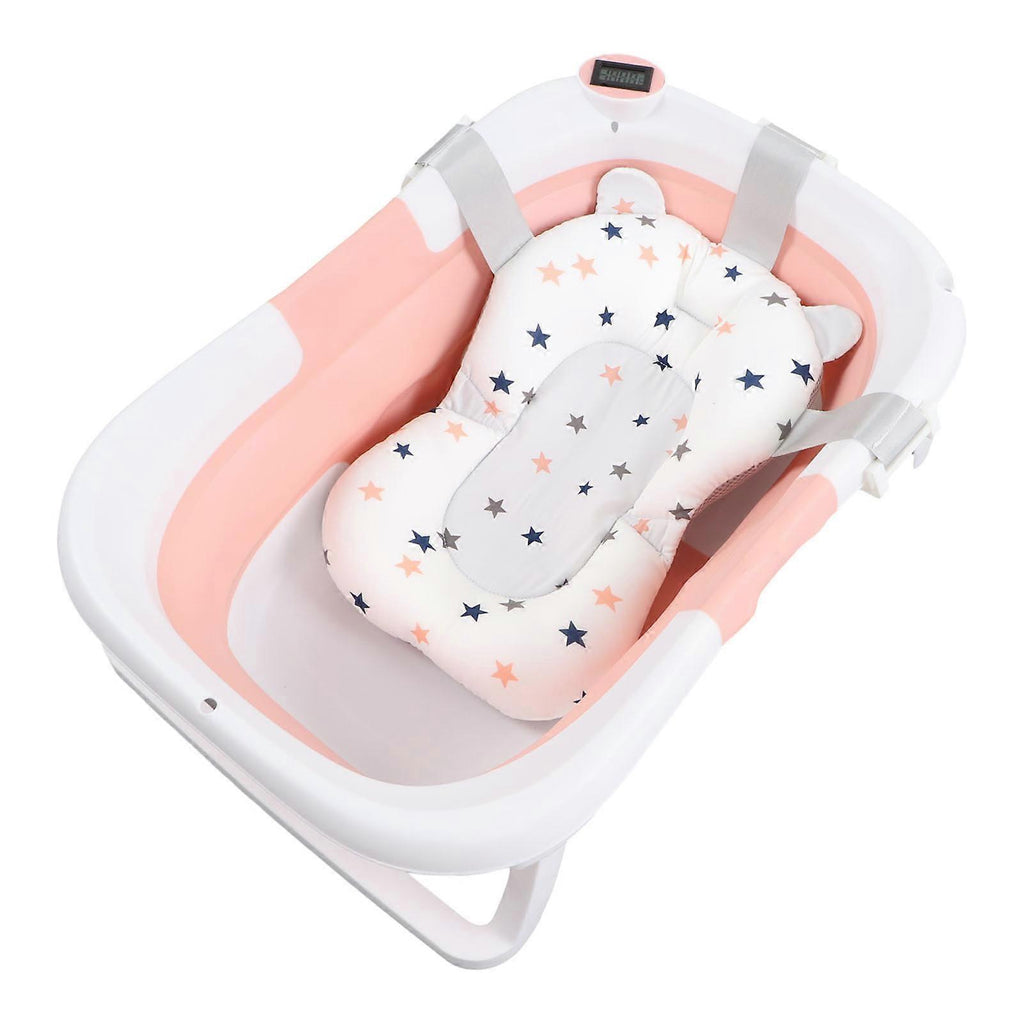 Baby Bath Tub Prevent Slipping Suspension Pad Thermometer Drain Hole Folding Bathtub for Infants Pink