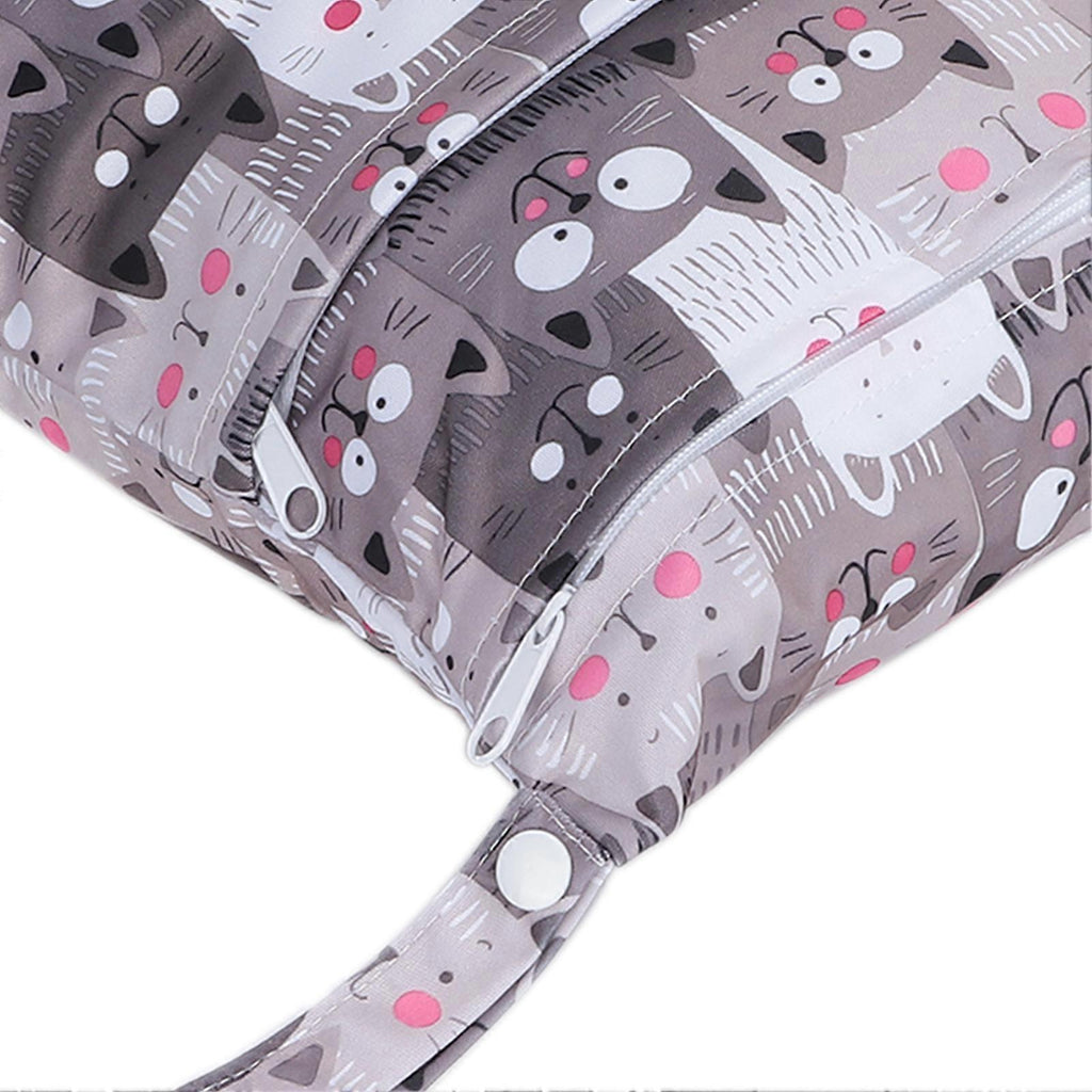 Feature: 1. There are two zippered pockets to separate wet and dry items. You can put them in the same bag. 2. Each bag has a handle, which can be hung anywhere, such as hooks, strollers, door handles, towel hooks, etc. 3. There are two?sided printing of different cute animal patterns on the baby cloth diaper bag. Your kids will love it! 4. Not only for diaper storage, but also for wet dry clothes bags, travel storage bags, wash bags, storage bags, cosmetic bags, clothes bags, etc. 5. It is convenient for you to carry it to any occasion because it is lightweight and can be folded. Specification: Item Type: Baby Cloth Diaper BagMaterial: Knitted printed cloth, TPU waterproof membraneSize: Approx.35 x 30cm / 13.8 x 11.8inApplicable People: General. Package List: 1 x Baby Cloth Diaper Bag Note: Please note that if you use it for wet clothes, you must make sure to squeeze out the water before putting it in the bag. Do not put very wet items in the bag.
