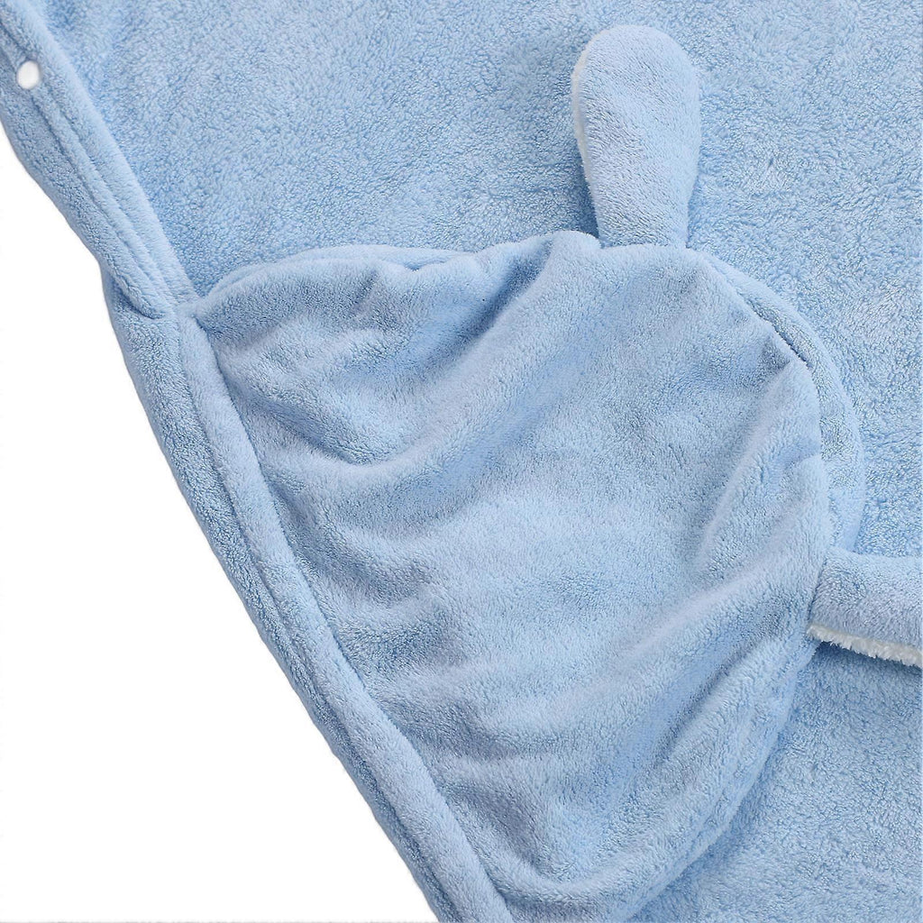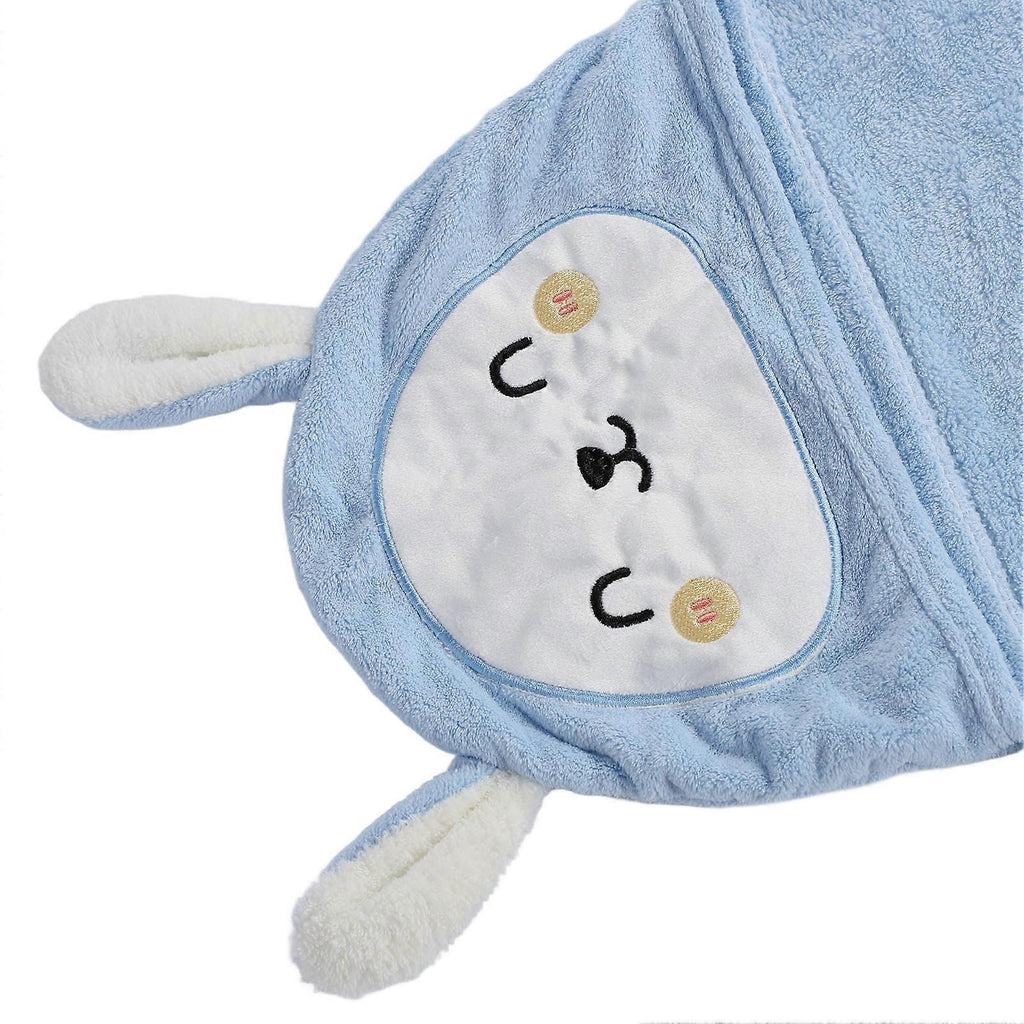 Baby Coral Fleece Hooded Towel Cute Bunny Ultra Absorbent Toddler Bathroom Towel for Infant Newborn Blue 31.5 X 59.1in