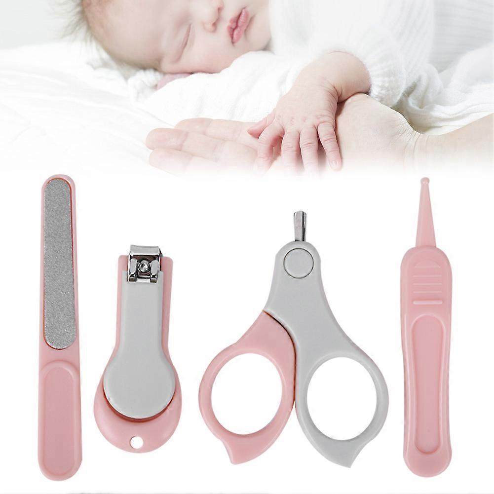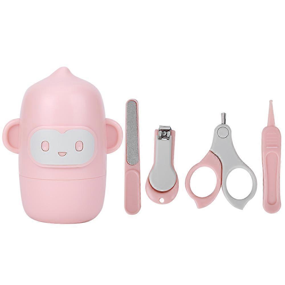 Baby Nail Clipper Nail File Scissors Tweezers Infant Manicure Tool Set Grooming KitPink