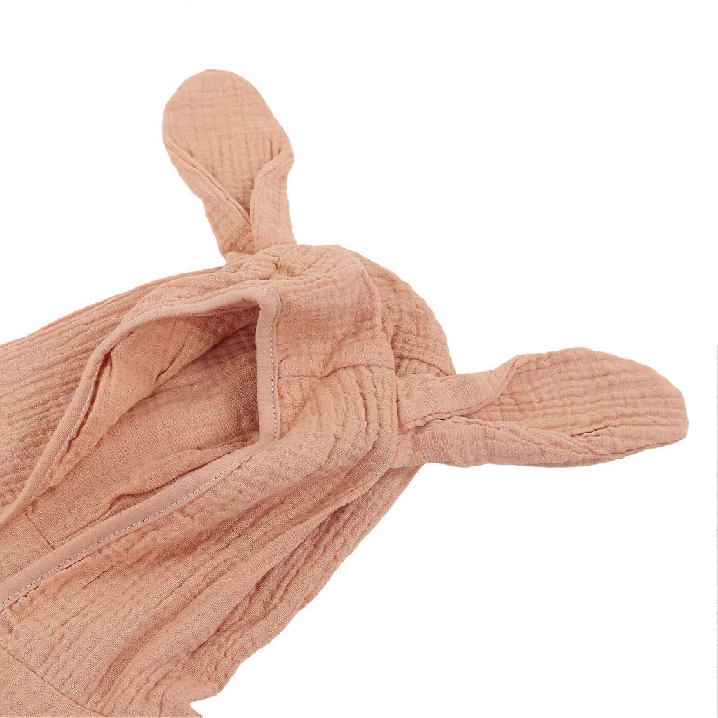Children Hooded Towel Baby Cotton Absorbent Cute Cartoon Rabbit Ear Bath Towel for Beach Dusty Pink