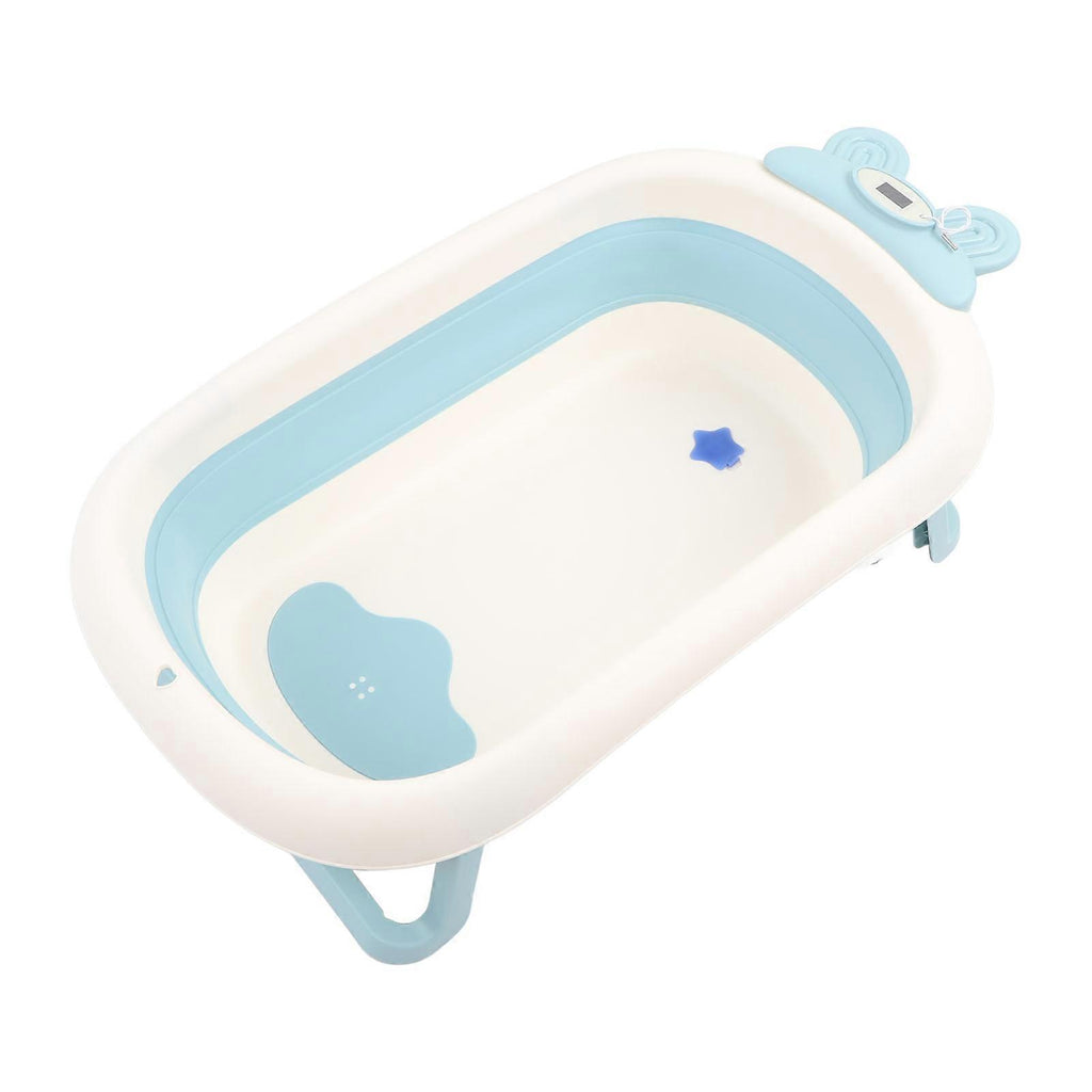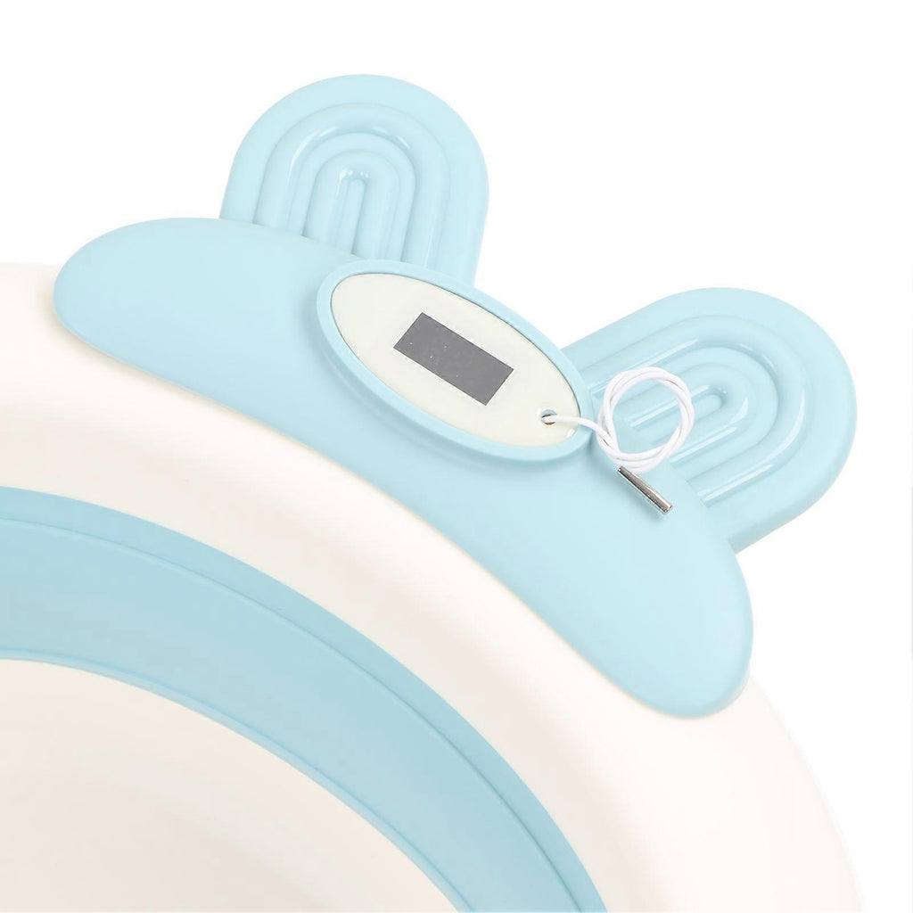 Collapsible Baby Bathtub Drain Hole Bunny Shape Infants Bathtub for Infant Travel Large Blue