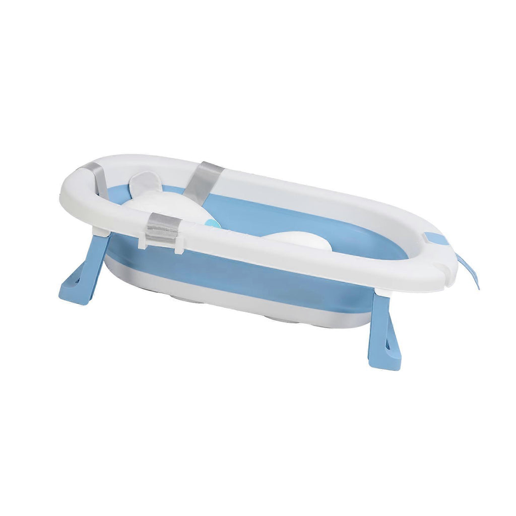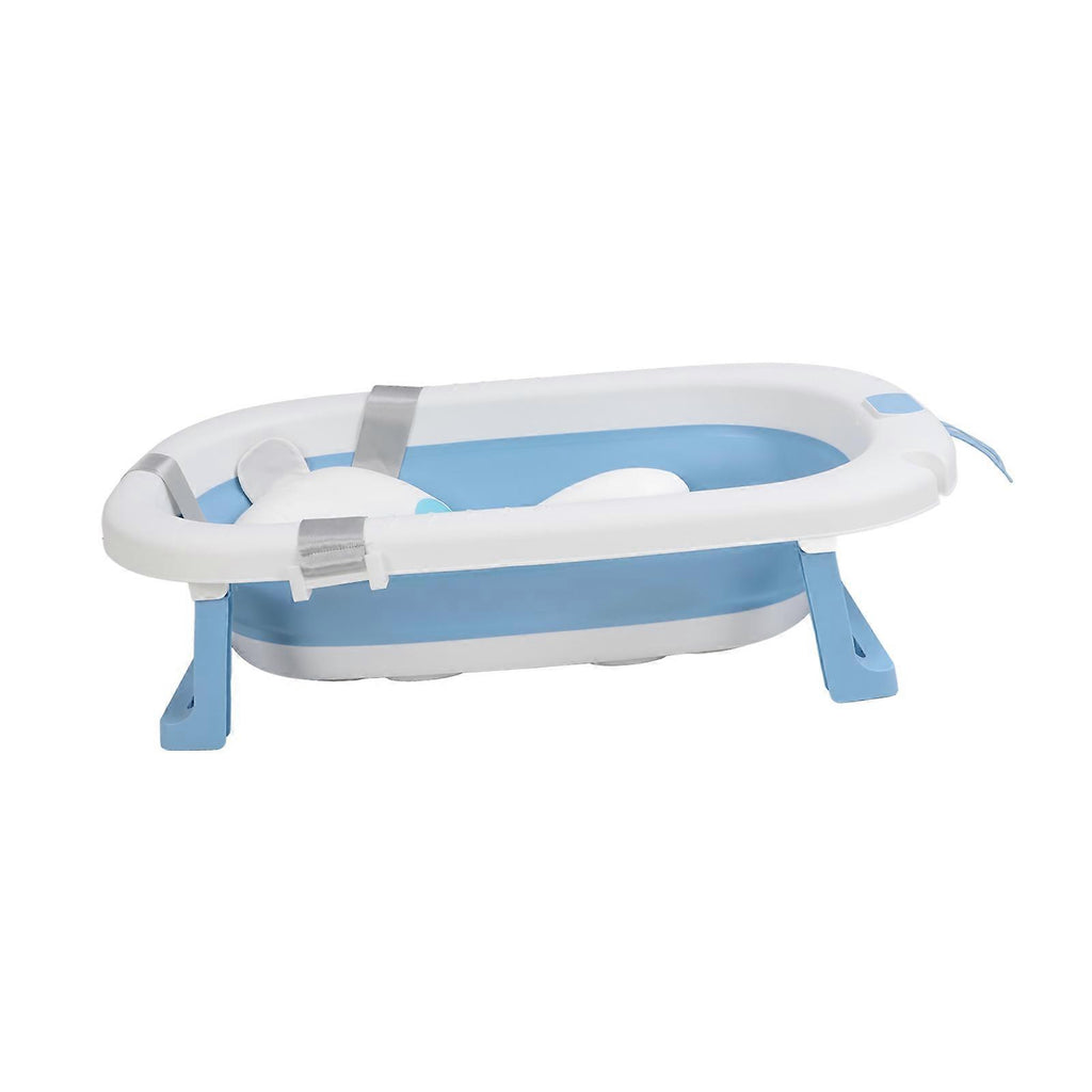 Collapsible Baby Bathtub Foldable Toddler Bath Cushioh Pad Lying Bathing Tub Home Use With Dinosaur Cushion T Shaped Mesh Blue