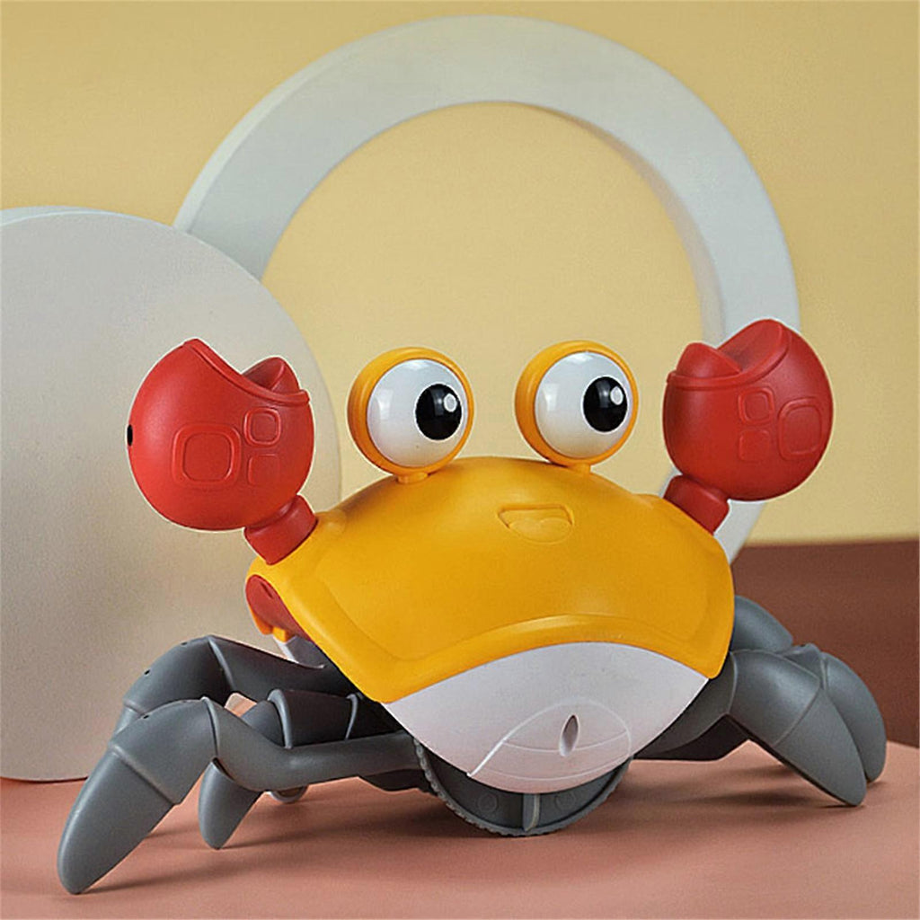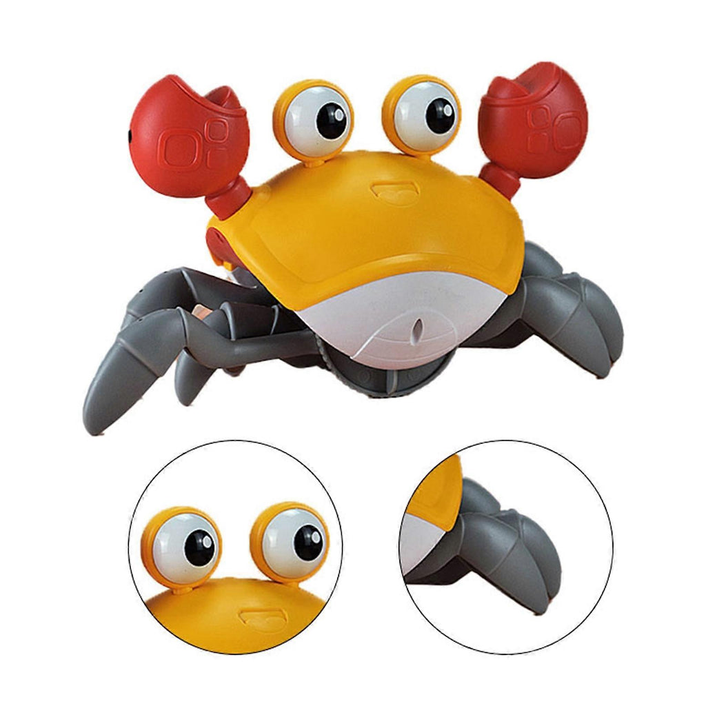 Crawl Crab Toy with Lights Music Automatic Obstacle Avoidance Electric Crab Toy Rechargeable Crawling Toys Orange