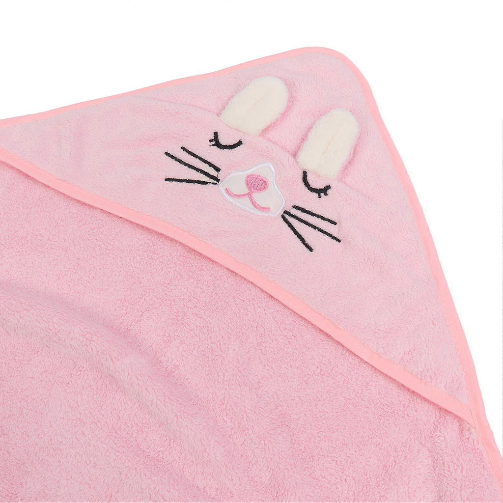 Hooded Baby Bath Towel Cartoon Animal Shaped Soft Fleece Water Absorption Baby Swaddle Towel 80x80cm Pink Cat