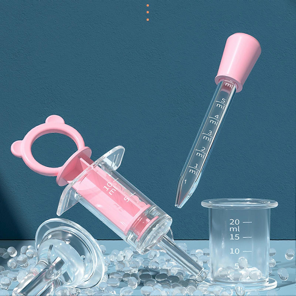 Kids Medicine Feeder Set Syringe Type Soft Silicone Prevent Choking Baby Medicine Water Dispenser Pink