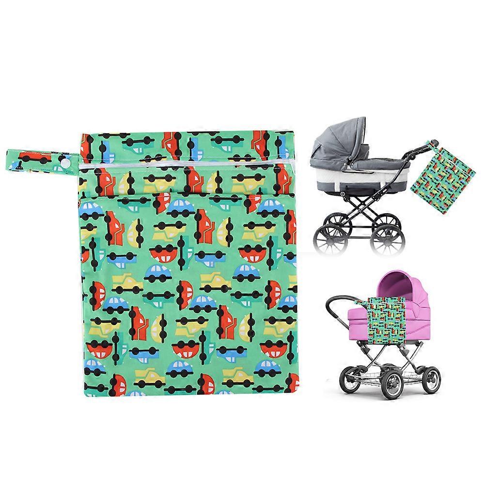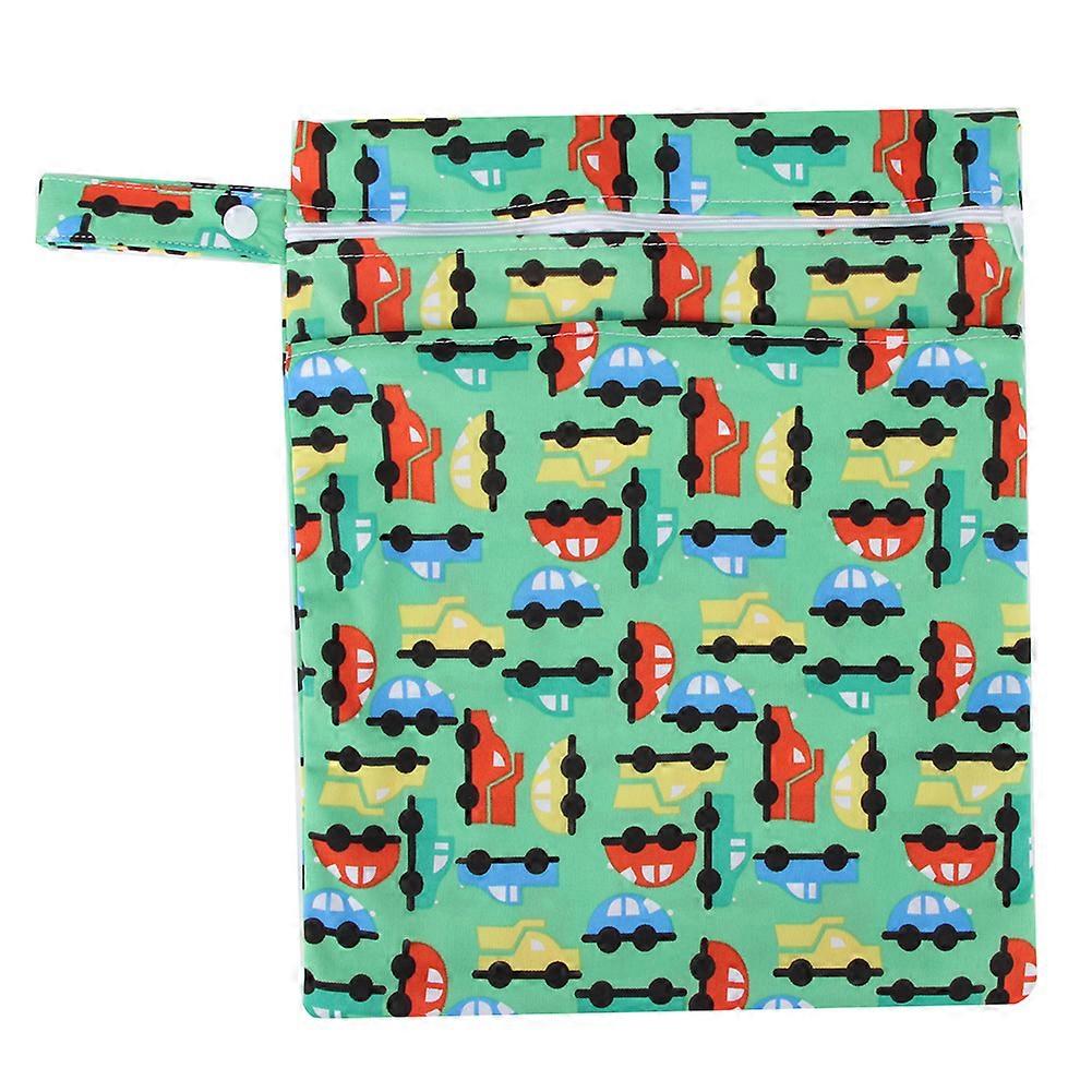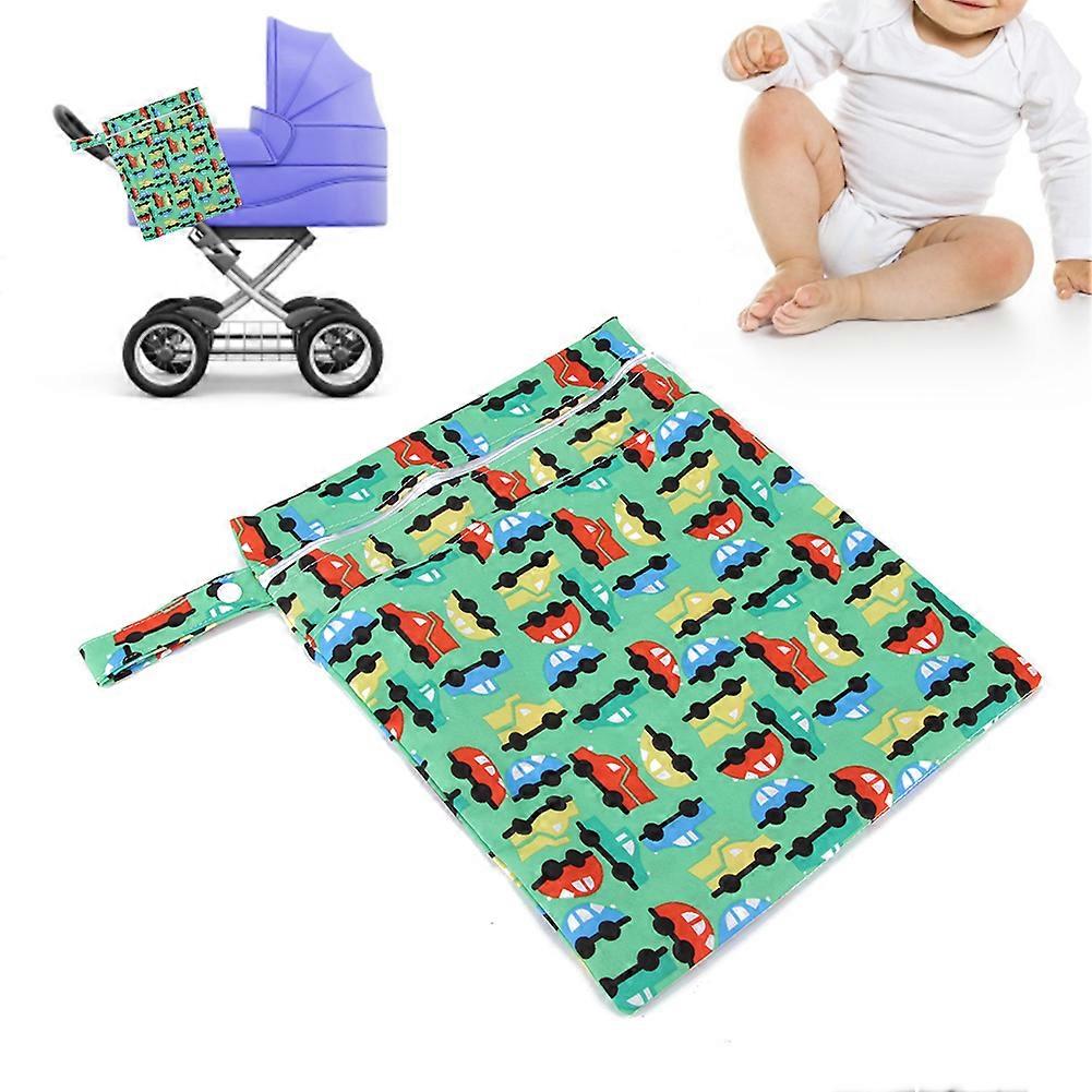 Portable Double Layer Baby Diaper Storage Bag Waterproof Outdoor Paper Diaper Bag(GreenCar )