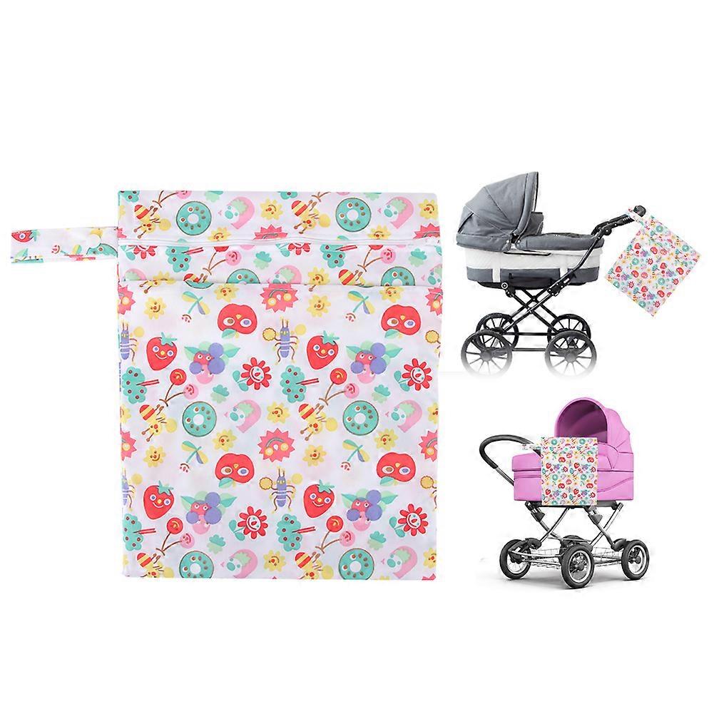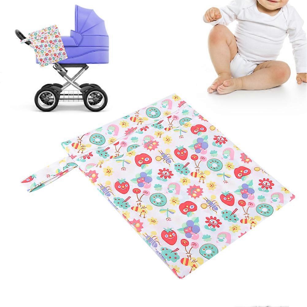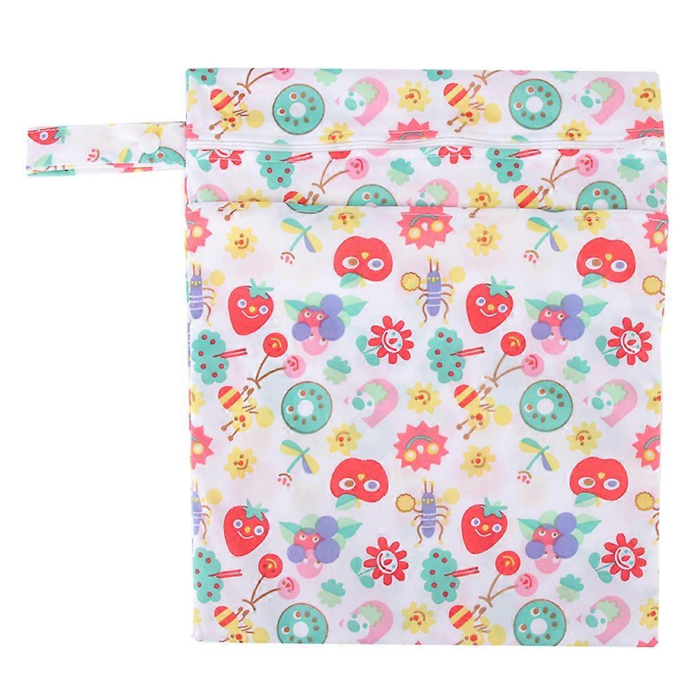 Portable Double Layer Baby Diaper Storage Bag Waterproof Outdoor Paper Diaper Bag(WhiteFruit )