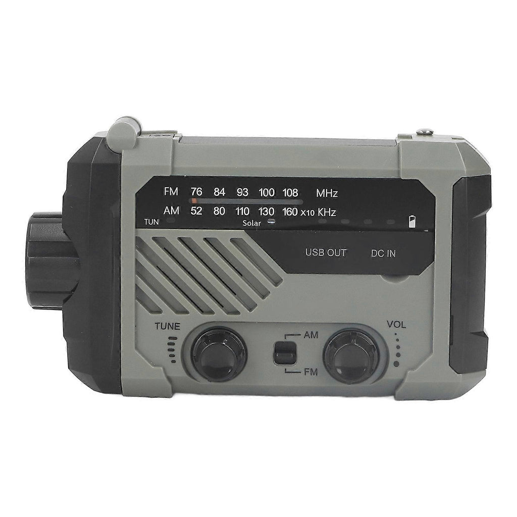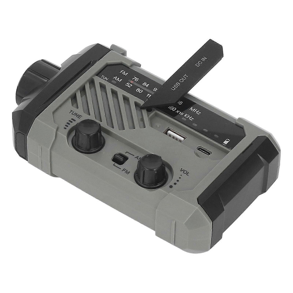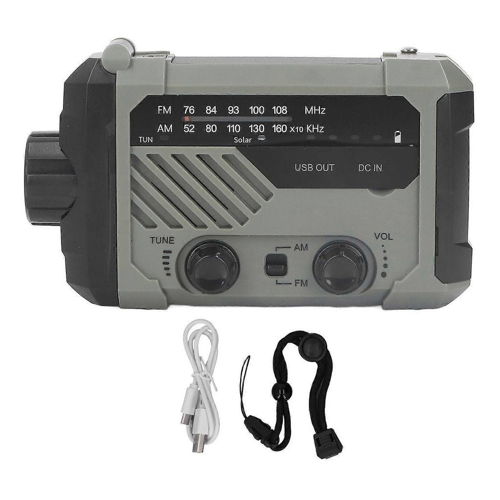 Feature: 1. Four Charging Modes: Emergency radio has four charging modes, hand cranked, solar powered, USB, and 3 x AAA dry battery. 2. Multifunctional: Hand crank radio has LED flashlight, reading lamp, SOS alarm function, radio, weather forecast and other functions. 3. Long Battery Life: Emergency Weather Radio has a built in 2000mAh rechargeable battery, which can work for radio or lighting for more than 20 hours. 4. USB Interface: Emergency weather radio has a USB charging interface (output), which can charge other devices, such as mobile phones and GPS. 5. Wide Application: Emergency crank weather radio is suitable for leisure camping, backpacking, wild survival or family emergency. Specification: Item Type: Emergency Hand Crank Radio Material: PP Size: Approx. 155x94x49mm / 6.10x3.70x1.93in Power Supply Mode of Products: 1. The product itself has built in battery: 3.7V 2000mh18650 battery (shipped with built in battery) 2. Power supply of battery compartment: AAAx3 (delivery does not include battery delivery) Charging Method: Hand Cranked, Solar, USB, 3 x AAA Dry Battery Input Power: DC 5.0V 1.2A Output Power: DC 5.0V 1.0A Working: 2.9-4.2V Flashlight: 1 LED (Low Light 0.5W, Strong Light 1W) Table Lamp: 14 LEDs (low Light 0.5W, Strong Light 1W) Radio: FM:76-108MHz AM:520-1710KHz Solar Panel Specification: 5.5V 30mA Function: 1. LED Flashlight 2. Reading Lamp 3. SOS Alarm Function 4. Radio 5. Weather Forecast. Package List: 1 x Emergency Hand Crank Radio1 x Charging Cable1 x Lanyard Note: Please allow some error for manual measurement.