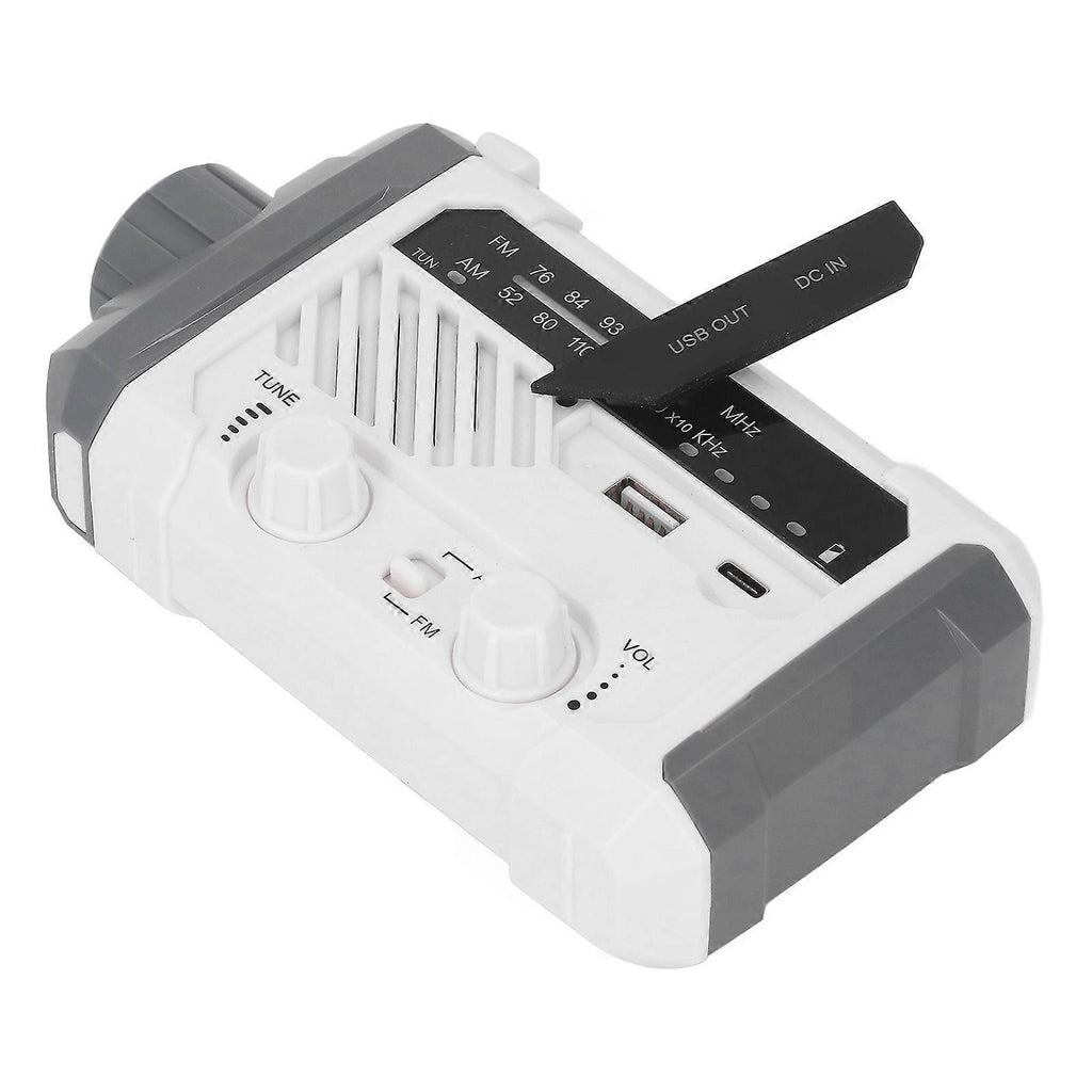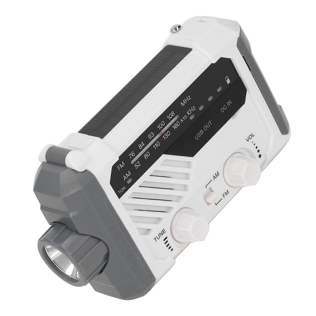 Solar Hand Crank Radio Multifunction AM FM USB Rechargeable Power Bank Emergency Weather Radio with LED Flashlight White