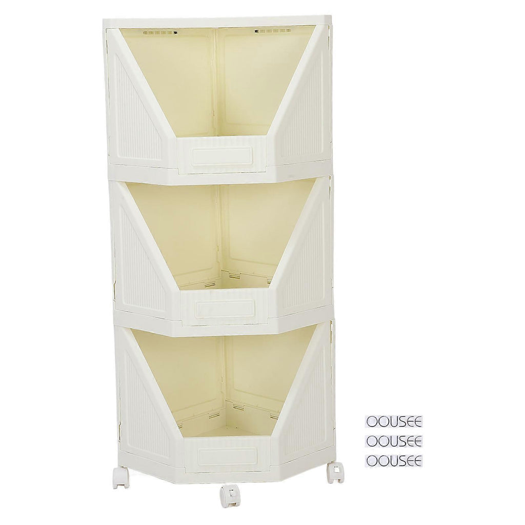 Corner Storage Cabinet with 4 Movable Wheels Corner Shelf Stand Bookshelf for Small Space Bathroom Kitchen Living Room Home Office 3 Tier