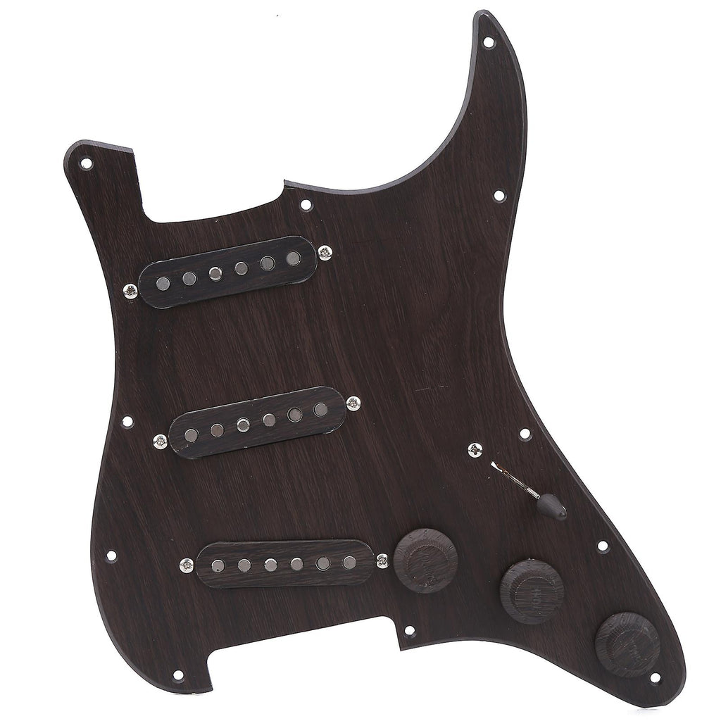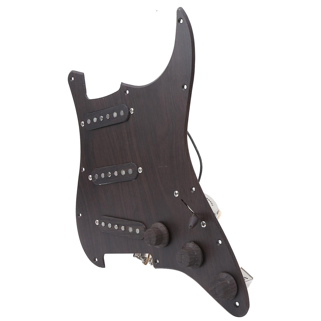 Features 1??The product is a set of for Alnico 5 pickups loaded prewired SSS guitar pickguard and screws 2??11-Hole SSS Pickguard(pickup guard) comes with a full set of pickups, switches, knobs and pre-wired circuits 3??Replacement of guitar parts suitable for American standard for FD electric guitar style 4??Two colors of maple and rosewood are available, which is a good decoration for your musical instrument 5??Made of high quality PVC + wood material, come with lightweight and easy to install Specification Item Type: Electric Guitar Guard Plate Swith: 5 Levels Potentiometer: CTS B250K-TONE and A250K Material: PVC pickup guard + wood Pickup: For ALNICO 5 Neck Pickup R: 6.2K Middle Pickup R: 6.5K Bridge Pickup R: 6.9K Jack: Mono double assurance Package List 1 x Electric Guitar Pickup Guard 1 x Electric Guitar Panel 17 x Screw