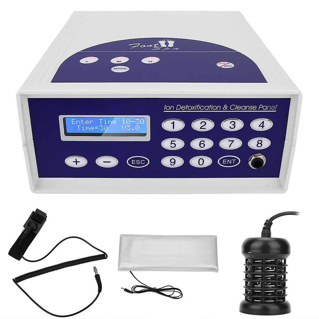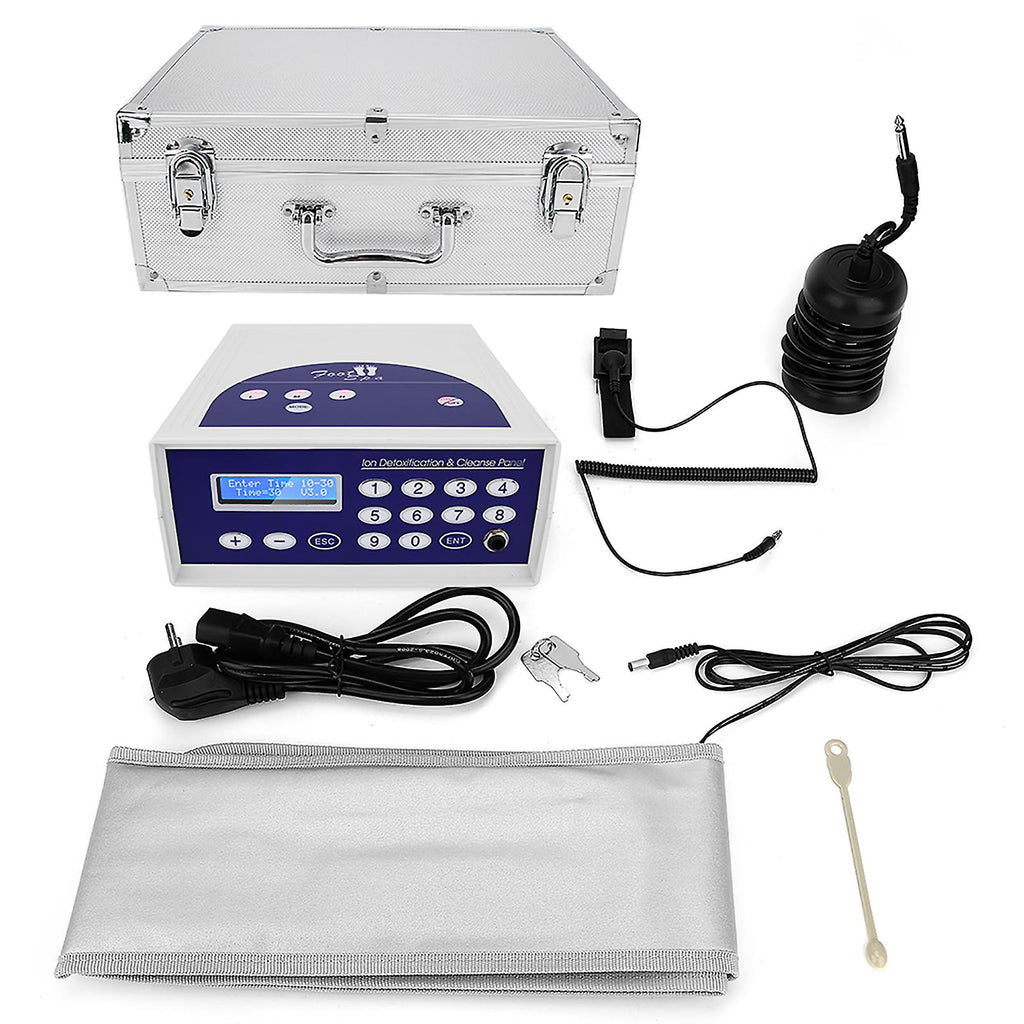 Features 1??The machine release a large number of energy ions, and these active energy ions penetrate into the body to supplement the lack of negative ions in the body. 2??The negative ion detox can promote the body's own detox, and its biological energy can help the human body's environment to achieve balance. 3??After a complex chemical reactions in the system, ions release high energy, so that the cell vitality in the body enhanced, promote the activation of various enzymes. 4??Improve the metabolic function of the excretory organs of the human body, accelerate the metabolism, expel the toxic waste accumulated in the body, and gradually restore the human body to health. 5??Easy and convenient to use, you can set the time according to your need, and you can easily see the concentration of salt. Specification Condition: Item Type: Foot Spa Machine Power: 60W Frequency: 50Hz/60Hz Output Current: 0-2.5A Package List 1 x Host 1 x Wrist Band 1 x Ion Head 1 x Power Cord 1 x Manual 1 x Aluminum Box 1 x Spoon 1 x Waist Belt