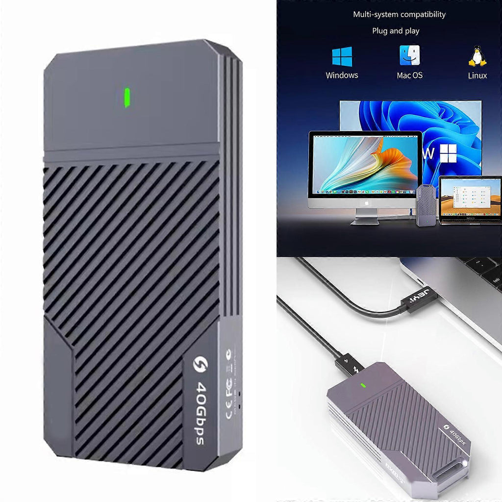 Features: and high quality Maximize your data transfer speeds with the M.2 NVMe 40Gbps SSD Enclosure. This sleek aluminum PCIe case supports size 2280 M&B+M Key SSDs, delivering impressive performance of up to 2700MB/s. The M.2 NVMe 40Gbps SSD Enclosure features a built in cooling fan for optimal temperature control, ensuring your SSD stays cool even during intense usage. Its tool free design allows for easy installation and removal of your M.2 SSD. Designed for a wide range of users, this SSD enclosure provides reliable and efficient external storage. Whether you're a student, professional, or casual user, this enclosure offers convenient data storage for all your needs. Take advantage of the portable convenience offered by this SSD enclosure. Perfect for use at home, in the office, or on the go, easily access and transfer files between devices wherever you are. Trust this brand to bring you well designed products that enhance your digital experience. With a commitment to superior quality and performance, they strive to meet your evolving storage requirements. Specifications: Material: Aluminum Alloy Size: 100x48x13mm Support capacity: 4T Transmission interface: USB-C Transmission speed: USB4.0 40Gbps Package Includes: 1 x M.2 NVMe SSD Enclosure note: 1. Due to the different monitor and light effect, the actual color of the item might be slightly different from the color showed on the pictures. Thank you! 2. Please allow 1-3mm measuring deviation due to manual measurement.