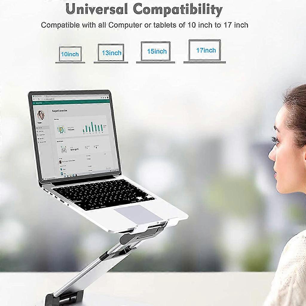 Features: This laptop stand can adjust the height of the laptop to maintain a healthy body posture to minimize neck fatigue or spinal problems. No need for any adjustment tools, just push and pull according to your needs, and it is foldable, easy to store, and the handle hole is designed for easy carrying. It is made of high-quality aluminum alloy, sturdy and durable, but there is no need to worry about any swinging. The silicone pad on the top of the stand is durable and non-slip, which can protect the computer from scratches and slips. The silicone pad at the bottom of the stand can ensure the stability of the product even when typing. Specially processed aluminum alloy material, neat and delicate appearance, easy to clean, anti-rust; anti-scratch, thermal conductive alloy and ventilated hollow design, can jointly cool down the computer and prevent overheating. It can be used in many occasions, such as offices, meeting rooms, libraries, coffee shops, kitchens and music theaters, for storing laptops, tablets, projectors, menus, music books, magazines, etc. Gifts for your friends and family. Specifications: Color: Silver / Gray Size: Pls See the Pictuers Suit for: 11-17inch Laptop and Tablet Function: Laptop Heightening Bracket and Cooling Bracket Material: Aluminum Alloy + Silicone Weight:1940g/4.27lb Max Height: 48cm/18.89in Min Height: 4cm/1.57in Max Loading: 30KG Package Includes: 1X Laptop Stand note: 1.Due to the light and resolutions setting difference, the item's color may be slightly different from the pictures. 2.Please allow slight dimension difference due to different manual measurement.