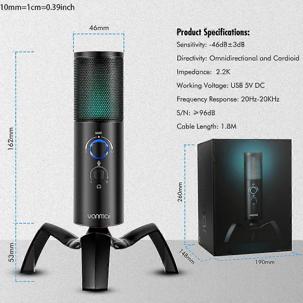 Features: and high quality Two pickup modes can be switched, cardioid and omnidirectional pickup modes, which can capture clear, smooth and crisp sound. Package includes 1 microphone, 1 tripod, 1 round filter. Perfect for podcasting, game streaming and professional recording. Plug and go,you can use the microphone for recording, live broadcast. The joint between the microphone and the bracket is designed with a universal shaft structure, and the angle can be easily adjusted during use. Specifications: Material:Zinc Alloy Mic Size:162x46mm/6.38x1.81in Color:Black Directivity: Cardioid Pickup,Omnidirectional Pickup Frequency Response:20Hz-20KHz Working Voltage: 5V Sensitivity:-46dB??3dB Impedance:??2.2k?? Signal Shielding:??96dB Cable Length:1.8m/5.91feet Package Includes: 1x Microphone 1x Bracket 1x Charging Cable 1x Windproof Sponge 1x Manual note: Please allow 1-2cm error due to manual measurement. pls make sure you do not mind before you bid. Due to the difference between different monitors, the picture may not reflect the actual color of the item.