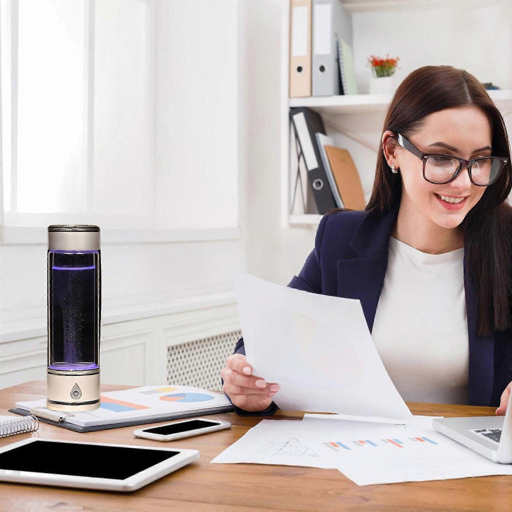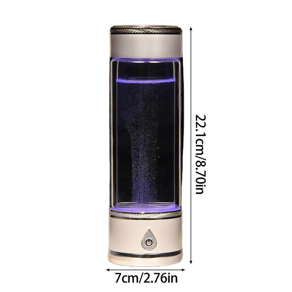 Features: Experience the power of advanced SPE technology with our portable hydrogens water bottle, generating high concentration hydrogens water in just 3 minutes to enhances hydrations and boost your energy levels. Crafted from glass, this hydrogens water generator ensures safety and longevity, featuring a long lasting lithium battery with USB fast charging for convenience outdoor. Ideal for health enthusiasts, frequent traveler, office workers, students, and athletes seeking easy way to incorporate antioxidant rich hydrogens water into their daily routine. Perfect for use at home, in the offices, during workouts, or while traveling, this hydrogens water machine provide a quick and efficient way to enjoy healthy, hydrogenated water. With its fashion design, this hydrogens water bottle makes excellent gift, offering a simple one touch operation that suits all ages and lifestyle, promoting a way of living. Specifications: Component: Glass Color: White/Golden Cup Capacity: 420ML Battery Capacity: 1000mAh Charging Time: 3-4Hours Size: Approx. 2.76x2.76x8.70inch(7x7x22.1cm) Package Includes: 1x Portable Hydrogens Water Bottle note: Please allow 1-2cm errors due to manual measurement. Due to the differences between different monitors, the picture may not reflect the actual color from the item.