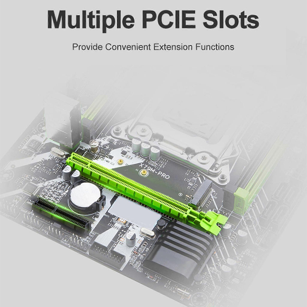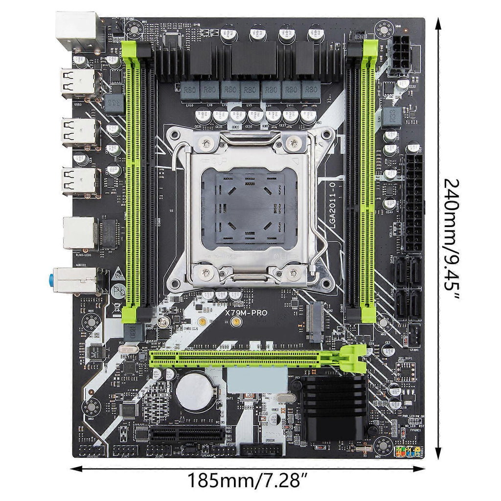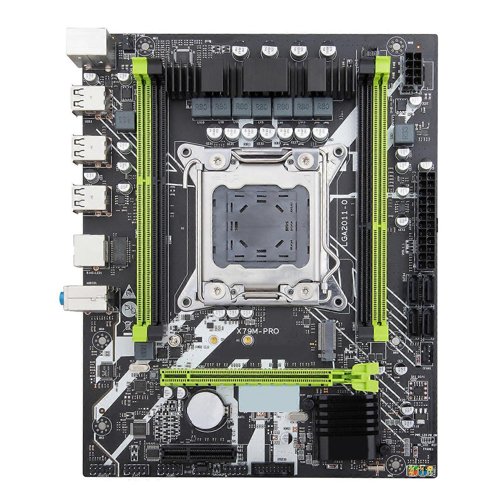 Features: and high quality Compact and portable: being so mini and light-weight, this product does not take much space and can be easily taken away. Durable material: This product is made of high-quality material, durable, long service for time, firm and stable in use. Meticulous workmanship: The meticulous design, perfect in workmanship, durable and long service for time. Perfect match: According to the original model design, perfect replacement installation, high-quality components??Support for for Intel XEON E5 2640 LGA 2011 DDR3 ECC REG memory. Quick start, loading and file transfer. Low power consumption, quiet, reliable and durable. Specifications: Model??HUANANZHI X79M PRO Motherboard CPU Socket??Support for Intel 2011 Processors Memory Socket??4xDDR3 Memory Socket Memory Standard??4 slots DDR3 1866/1600/1333 MHz Sata??4xSATA2.0 Interface Extended interface??IO: 1xPS/2 Mouse / keyboard interface. 6xUSB2.0. 1xGigabit Ethernet Card. 3x3.5MMAudio interface;Expansion pin: 1x9pin USB2.0; 1x19pin USB3.0(The rate of 2.0); 1xFront audio output pin Expansion Slots??1xPCI Express3.0X16, 1 PCI ExpressX4, 1xM.2 NVME interface(X4 3.0) Soud Track??ALC662 5.1 Sound Track Network Interface??Gigabit Ethernet Card Power interface??24pin+4pin Fan interface??2 ??C?? layer??4 layer, 7Phases Dimension ??approx. 240x185mm/9.45x7.28in M-ATX CPU: Processor Series: Xeon E5 2640 (6 cores/12 threads) Main frequency: 2.5GHz Socket type: LGA 2011 3rd level cache: 15MB Technology: 32nm Power consumption: 95W Memory: Type: ECC REG (server memory) Frequency: DDR3 1600MHz Capacity: 16G (2x8G) Package Includes: 1PC x Motherboard note: 1??The platform needs powerful power. Please make sure your power supply is sufficient to support it(at least 500w power supply) . 2??Please allow 1-3mm differs due to manual measurement. 3??Due to the different display and different light, the picture may not show the actual color of the item. Thanks for your understanding.