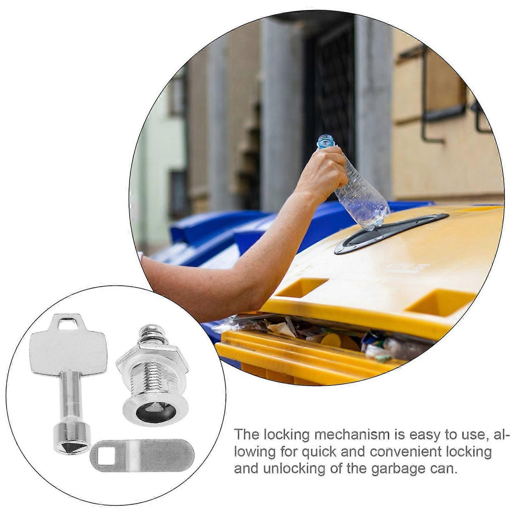 Description If you are looking for a trash can lock, then your research is over here. That's because our product can meet your need. Adopted of solid material, practical and firm for long time use, not easy to get deformed and bring you much convenience. Features -Color:Assorted Color -Material:Iron -Size:3.70X2.30X2.30cm/1.45X0.90X0.90in -Size:5.20X2.80X1.20cm/2.04X1.10X0.47in -The trash can lock is made of iron material, sturdy for long-term use. -Safety and reliability: specifically designed for garbage cans, effectively prevents unauthorized access, protecting privacy and the security of items inside the garbage can. -Convenient and easy to use: this triangle slot lock is equipped with a triangular key, simple operation to easily open and close the garbage can. -Multi-functional design: suitable for various garbage cans in residential areas, offices, public places, providing a comprehensive solution for garbage can locking. -Exquisite appearance: minimalist design, seamlessly integrates with the garbage can, without affecting its aesthetics. Package list: 1 x key 1 x slot lock