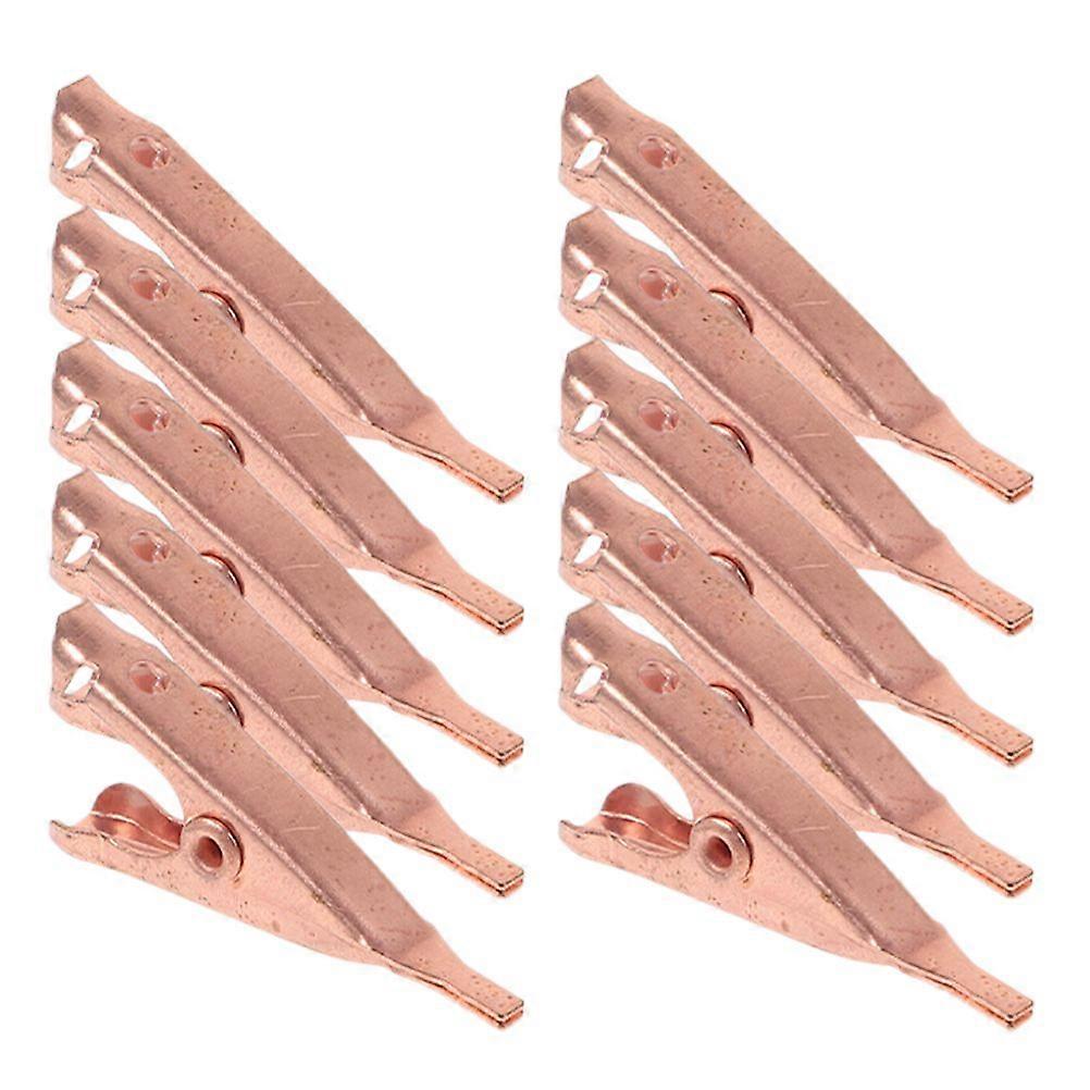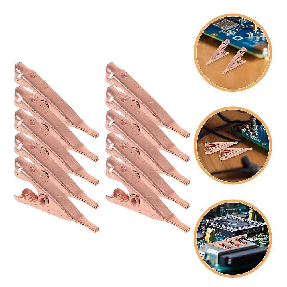 Description Discover the versatility of our pure copper alligator clips, designed for efficient and reliable electrical connections. These small-sized clips are for temporary wiring and testing, ensuring a secure grip with their flat mouth design. Made from copper, they offer long-lasting durability, making them ideal for various electronic applications. Features -Color:Dark Red -Material:Copper -Size:3.00X1.00X0.50cm/1.18X0.39X0.20in -Crafted entirely from copper, these clips are designed to ensure long-term durability -The flat mouth design simplifies wire connections, enhancing efficiency and making your tasks quicker and easier -With their compact size, these clips are ideal for temporary wiring and testing in confined or tight spaces -This providing you with an ample supply for a variety of different projects and needs -For testing and connecting electronic wires, these clips deliver consistent and reliable performance every timePackage list: 10 x alligator clips