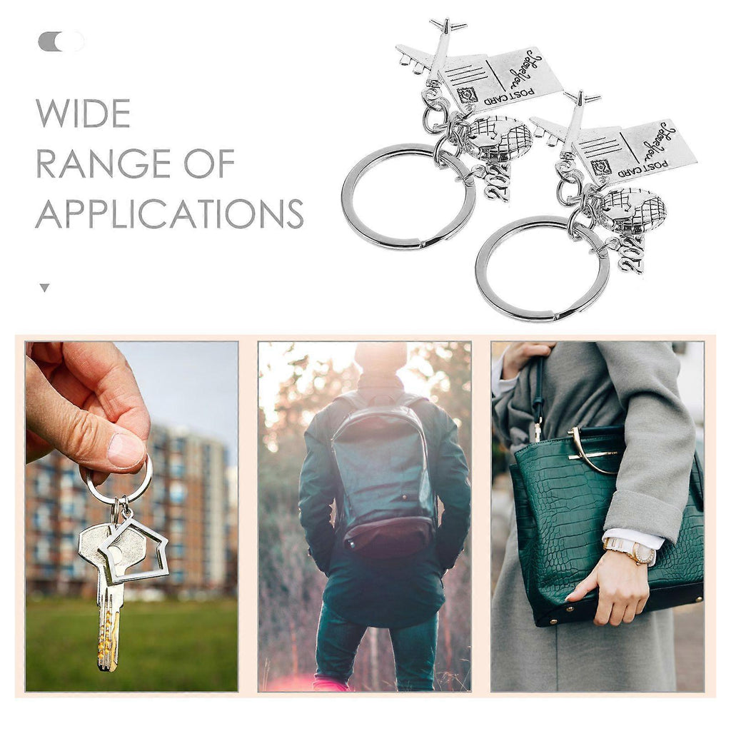 2pcs Creative Airplane Keychain Set With Airplane Globe Postcard Charms 2025 Graduation Party Present For Tour Guide Travel Enthusiasts