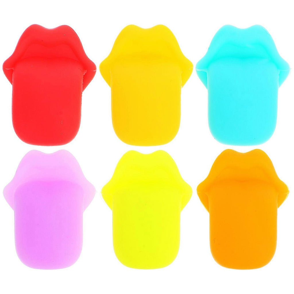 6pcs Silicone Wine Markers Reusable Cup Markers Tongue Shaped Wine Charms